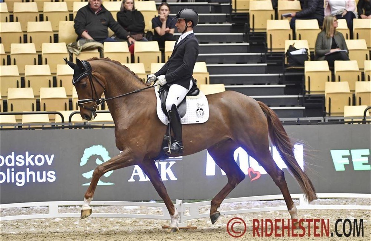 Det var to overbevisende ridt, der blev vist af de dressurbetonede ungheste, som deler en foreløbig førsteplads. Der er tale om tophoppen Tophøjs Florentina e. Floriscount/Solos Landtinus (opdr. Anette Nilausen og Niels Jørgen Johansen). Tophøjs Florentina blev redet overbevisende af Frederico de Almeida, som viste den smukke, ædle fuks både smidigt og kyndigt.