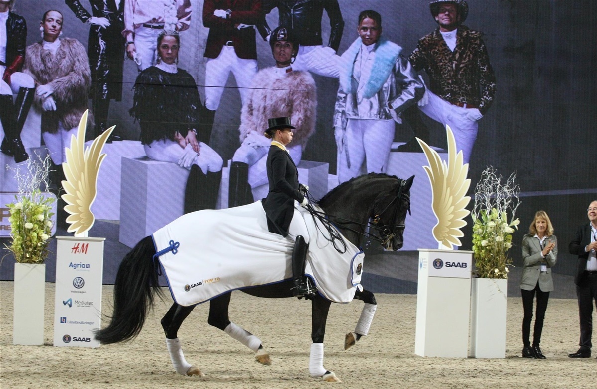 Det betyder at man næsten fristet til at sige - selvfølgelig vandt Isabell Werth også dagens Grand Prix i Stockholm. Sidste år vandt hun Saab Top 10 med Emilio og i dag tog hun et stort skridt i den rigtige retning mod endnu en sejr. Med Don Schufro hoppen Weihegold Old, lagde Werth i dag god afstand til konkurrenterne, da et meget enigt dommerpanel samlet gav dem 82,78%. Blandt programmets absolutte højdepunkter hostede dommerne op med flere 10 og 9 taller for det eminente piaffe - passage arbejde som hoppen besidder.