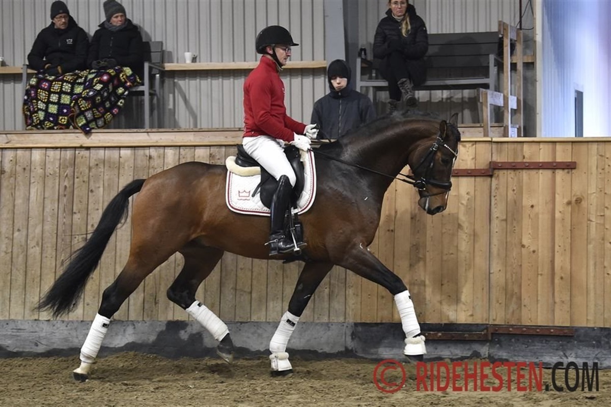 Nordentofts Jerome e. Jovian/Revolution fra Nordentoft Equestrian ApS I Thisted fik 801,5 points, heraf tre 8-taller for kapacitet samt 8,5 for trav og galop.