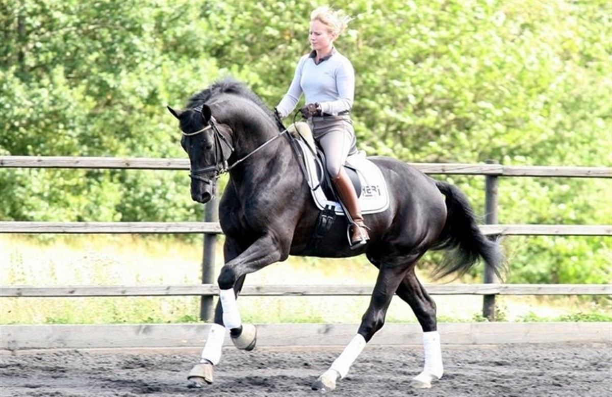 Indehaver Lone Bøegh Henriksen har overrakt dressurrytter Louise Estrup tøjlerne og lægger nu hestens fremtidige uddannelse i denne dygtige rytters hænder. Hoftanz og Louise Estrup synes begge at være begejstrede for det knap to uger gamle partnerskab og kvitterede herfor ved at placere sig som nr. 2 af 36 starter ved weekendens DRF-championats kvalifikation i Ballerup Rideklub med en score på 8,8 point og er dermed videre til mellemrunden. - Han er en fantastisk hest at arbejde med og en rigtig kammerat. Vi kender knap hinanden, men jeg kan allerede mærke, at han er en hest, der vil gå meget langt for sin rytter, fortæller Louise, der træner hos berider Michæl Søgaard. Louise har selv flere heste avlet af HP Horses og heriblandt den 4-årige Rosenwalz, som hun også har kvalificeret til DRF-mellemrunden. Hoftanz er netop overleveret af sin hidtidige uddanner Johannes Westendarp, der har kvalificeret hingsten til det tyske Bundeschampionat ved en kvalifikationssejr i juli måned, men det er nu besluttet, at hingstens fremtid bliver i Danmark. Louise Estrup ser frem til at videreuddanne den lærenemme og talentfulde hingst, der er kåret i Dansk Varmblod og færdigkåret i de førende tyske avlsforbund. Således vil Hoftanz (e. His Highness x Rotspon x Weltmeyer x Brentano II) fra bedækningssæsonen 2010 stå i Danmark efter at have bedækket intensivt i Tyskland i to sæsoner. I sin første følårgang brillerede Hoftanz sidste år med adskillige højt præmierede føl i både Tyskland, Holland og Danmark, og havde særdeles gode føl på auktion i både Oldenburg og KWPN. Igen i år har han et super godt føl med på Oldenburger forbundets elitefølauktion. Ud af Hoftanz’ lille følårgang i Danmark lykkedes det at stille seks føl på region 1’s følskue i år og de udgjorde i alt en smuk og ensartet samling føl, der faldt helt i dommernes smag. Intet mindre end tre af føllene gik videre til finalen, hvor føllet Hortensia mf. Florencio blev skuets bedste dressurbetonede hoppeføl og udtaget til eliteskue. Endvidere var der forespørgsel på flere af føllene til Dansk Varmblods eliteauktion, men disse unge føl havde allerede skiftet ejer eller kunne ikke købes. Kilde: Pressemeddelelse.