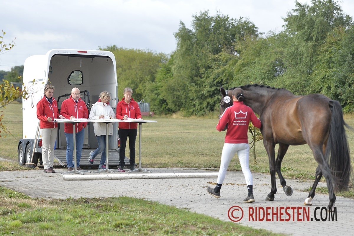 Det tørre og varme vejr er nu erstattet med mere velkendt dansk sommervejr, og derfor blev sadelkåringen på Vilhelsmborg afviklet indenfor i tørvejr. For holdet 4-års og ældre blev det katalog nr. 550 Risvangs Miss Mahlee e. Everdale/Desperados, der tog fløjpladsen.