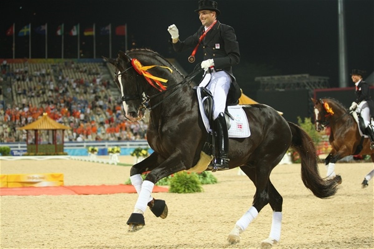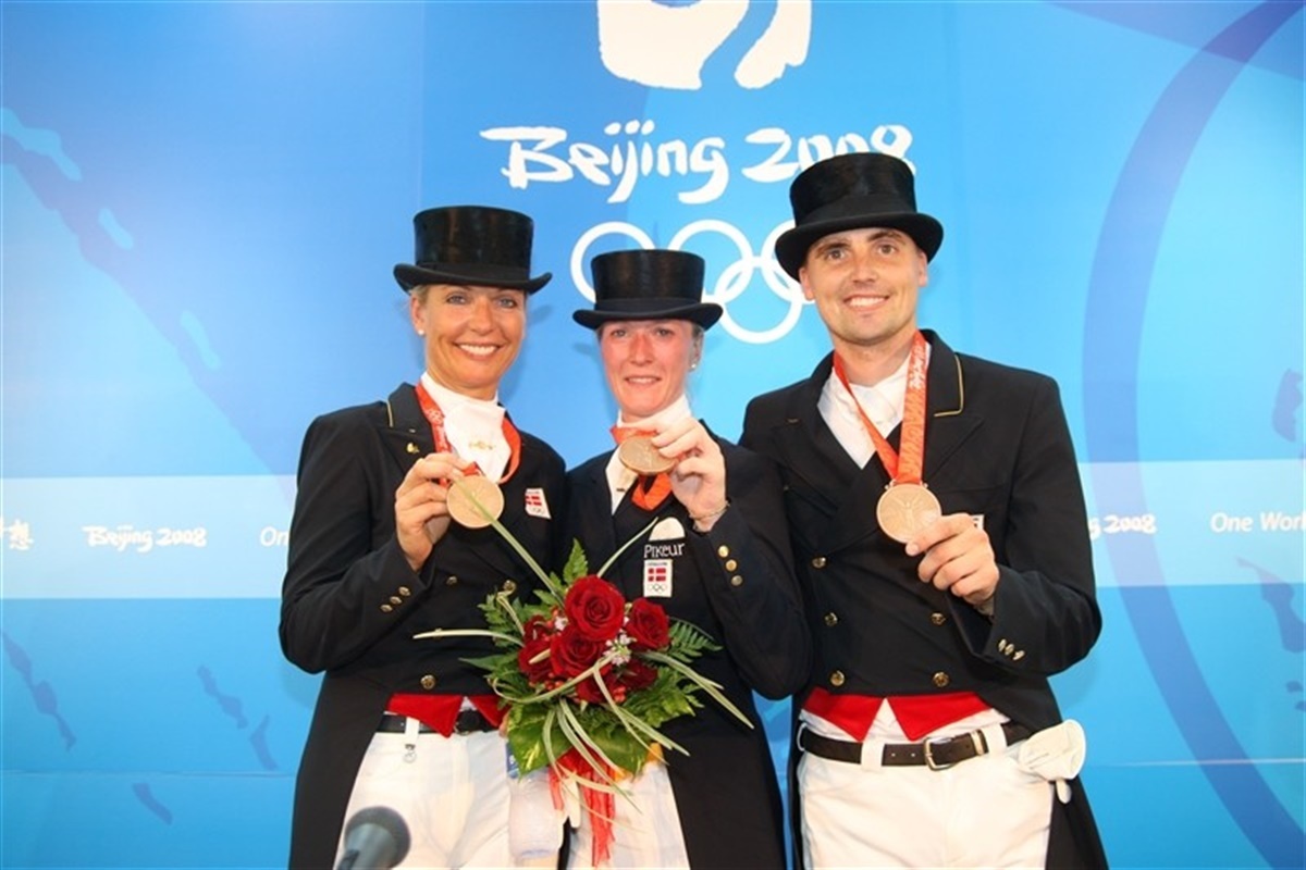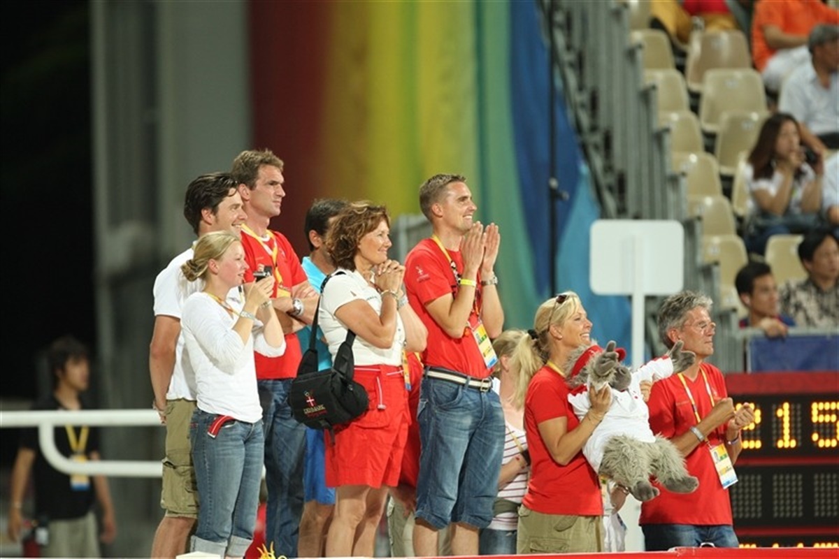 Anky og Isabell og deres holdkammerater festede i timevis sammen med prinsesse Nathalie, Anne van Olst og Andreas Helgstrand samt et stort antal supportere fra Tyskland, Holland og Danmark. Rytterne havde flyttet festen fra den tørlagte OL-by til Riverside Regal hotel, hvor champagnen og øllet flød i en lind strøm hele natten. Med Anky og Isabell i forreste række samledes de tre medaljevindende nationer på podiet i baren og skrålede "We are the champions" for fuld udblæsning - danske flag, tyske og hollandske ditto vejede overalt - og de kinesiske sikkerhedsvagter fik sig en på opleveren. Det er hviledag i dag for dressurrytterne, inden det i morgen aften kl. 19.15 Hongkong tid går løs med Grand Prix Special. De individuelle medaljer afgøres af rytternes point i Specialen og küren - 25 ryttere får adgang til Specialen og heraf går de 15 bedste videre til kürfinalen. I det individuelle resultat er Isabell Werth og Satchmo klart bedst med over 76%, efterfulgt af Anky van Grunsven med godt 74% og Heike Kemmer/Bonaparte med godt 72%. Nathalie zu Sayn-Wittgenstein og Digby er på 8. pladsen, Andreas Helgstrand og Don Schufro er nr. 14 og Anne van Olst og Clearwater er placeret på en 17. plads, hvilket betyder, at alle tre danske ryttere er med videre i den individuelle konkurrence.