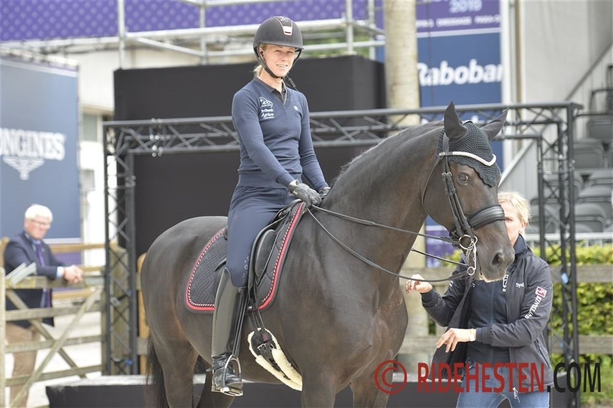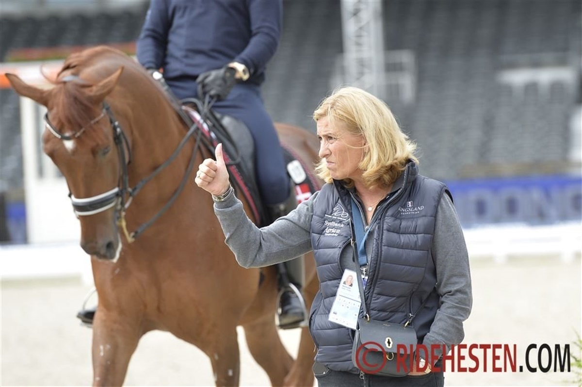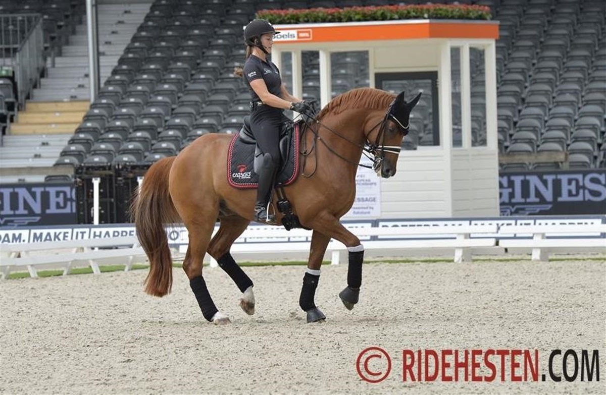 Mens Agnete og Anders tog det lidt roligt i dagens træning, så red Cathrine Dufour og Daniel Bachmann Andersen mere til i træningen, hvilket måske indikerer, at de to ryttere først skal i konkurrence på tirsdag. Både Blue Hors Zack og Atterupgaards Cassidy blev redet i piaffe/passage, og de så begge brandgodt ud! Der var da også brede smil hos alle danske ryttere, da de red fra banen, og ingen af hestene havde reageret på omgivelserne.