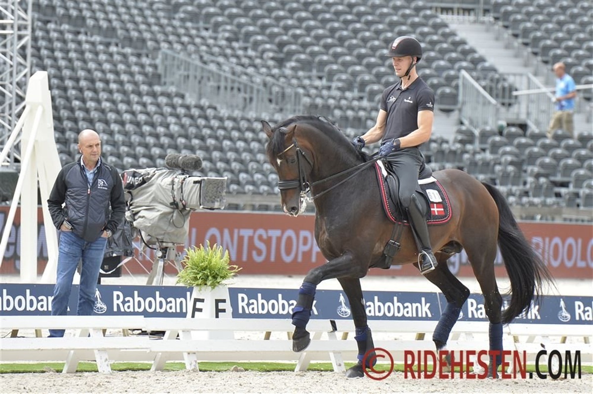Det var godt at se de danske ryttere træne på stadion her til eftermiddag forud for EM i Rotterdam. Anders Dahl tog det lidt roligt i træningen med Fidelio van het Bloemenhof. Han skridtede rundt om banen så hesten fik mulighed for at se de mange blomsteropsatser samt de forskellige tv-kameraer, der er placeret rundt om banen. Da Anders gik igang med den egentlige træning, lavede han mange sidebevægelser og løsgørende arbejde, og han smilede tilfreds, da han red fra banen.