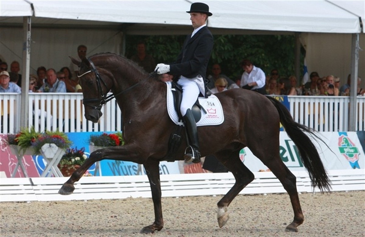 Andreas Helgstrand og Hønnerups Driver var flyvende og viste sig som en rigtig publikumsmagnet. Der var pludseligt meget tæt af tilskuere omkring banen og parret scorede dagens største bifald. Da ekvipagen travede banen rundt var der stille af beundring over Drivers fantastiske mekanik i traven, da den dansede med løft, sving, bæring og naturlig kadance. Også skridten fik hesten vist afslappet og flydende, men desværre blev han forskrækket på den ene langside i galopprogrammet og sprang, hvilket igen kostede Andreas i karakteren for hestens eftergivenhed. Hønnerups Driver er efter Blue Hors Romanov med Blue Hors Don Schufro som morfar og opdrættet af Stutteri Hønnerup, der ejer hesten sammen med Andreas Helgstrand. Driver scorede dagens højeste score 9,0 for trav. Præcist som Rafæls 9,0 for galop var dagens højeste og Donna Uniques 8,8 for skridt blev heller ikke overgået af nogle. Alle disse tre danske heste er sikkert videre i finalen og indtager efter første runde pladserne 3, 5 og 6 med fire tyskere som 1, 2, 4 og 7. Reelt er det muligt for de danske heste at vinde guld, sølv og bronze, men også slet ikke at få medalje. En dansk medalje i 5-års finalen er dog yderst sandsynlig.