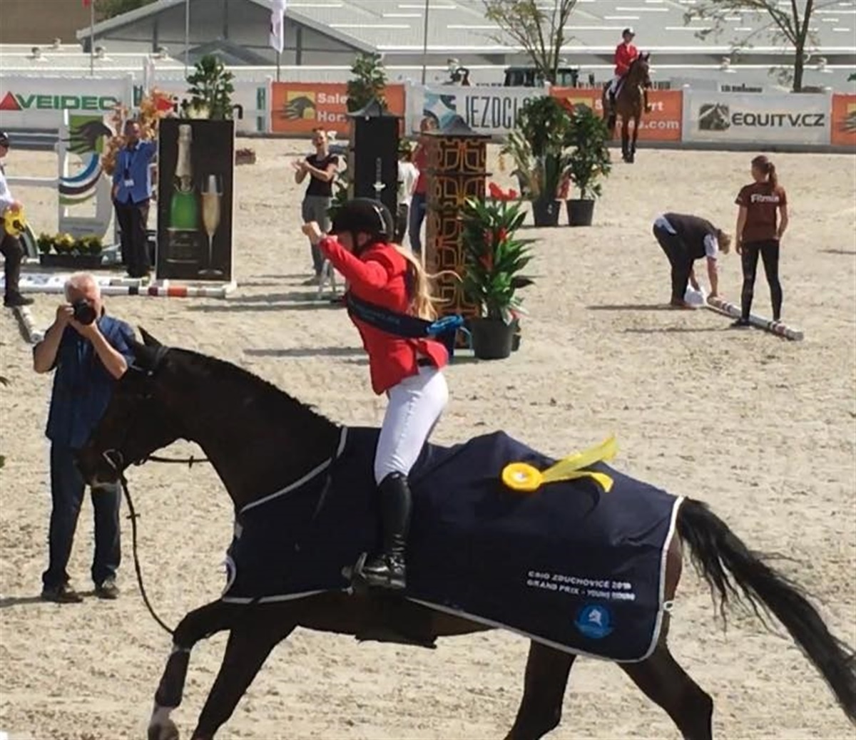 Endnu en dansk juniorrytter blev placeret i klassen, nemlig Camilla Mortensen på Handybeat e. Heartbeat/Diamant de Semilly (opdr. Carsten Carstensen, Rødekro). Camilla havde omspringningens næsthurtigste tid, men fik en bom og endte derfor på syvendepladsen. Hun har også en sejr med hjem fra Tjekkiet, da hun vandt en af stævnets indledende klasser, og derudover kom hun også på en flot tredjeplads i lørdagens Junior Small Tour 130 cm efter to fejlfri runder på Gwintosca HBC.