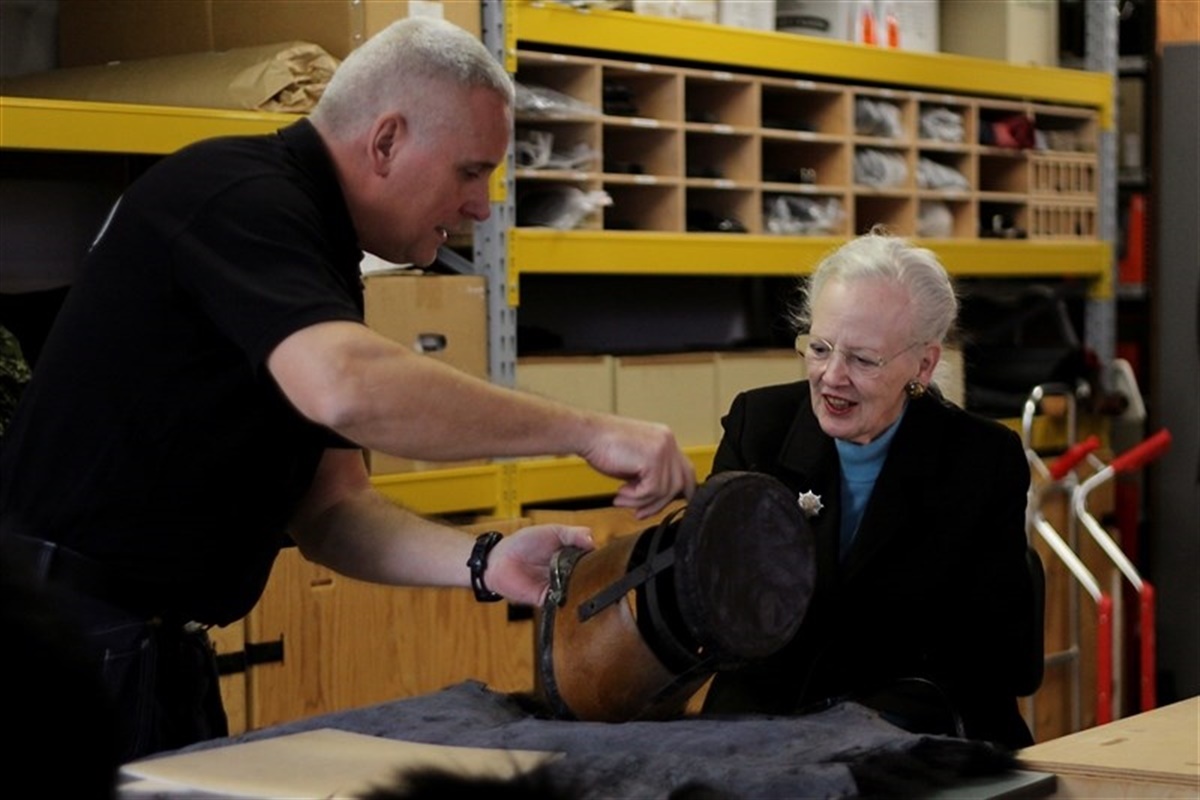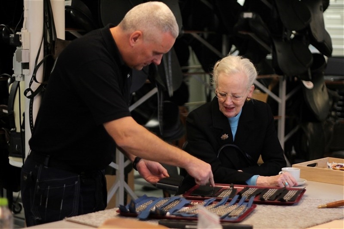 Efter besøget på Hærens Officersskole aflagde Dronningen besøg hos Sadelmager B.K. Rützou, hvor der var rundvisning i det traditionelle sadelmagerværksted. Hos sadelmageren fremstilles foruden sadler også vagt- og paradeudrustning for Den Kongelige Livgarde, blandt andet de velkendte bjørneskindshuer.