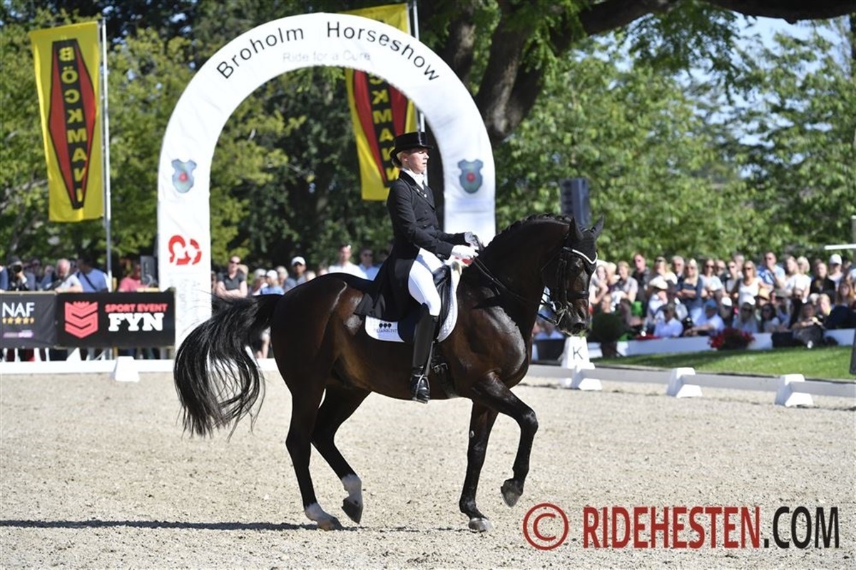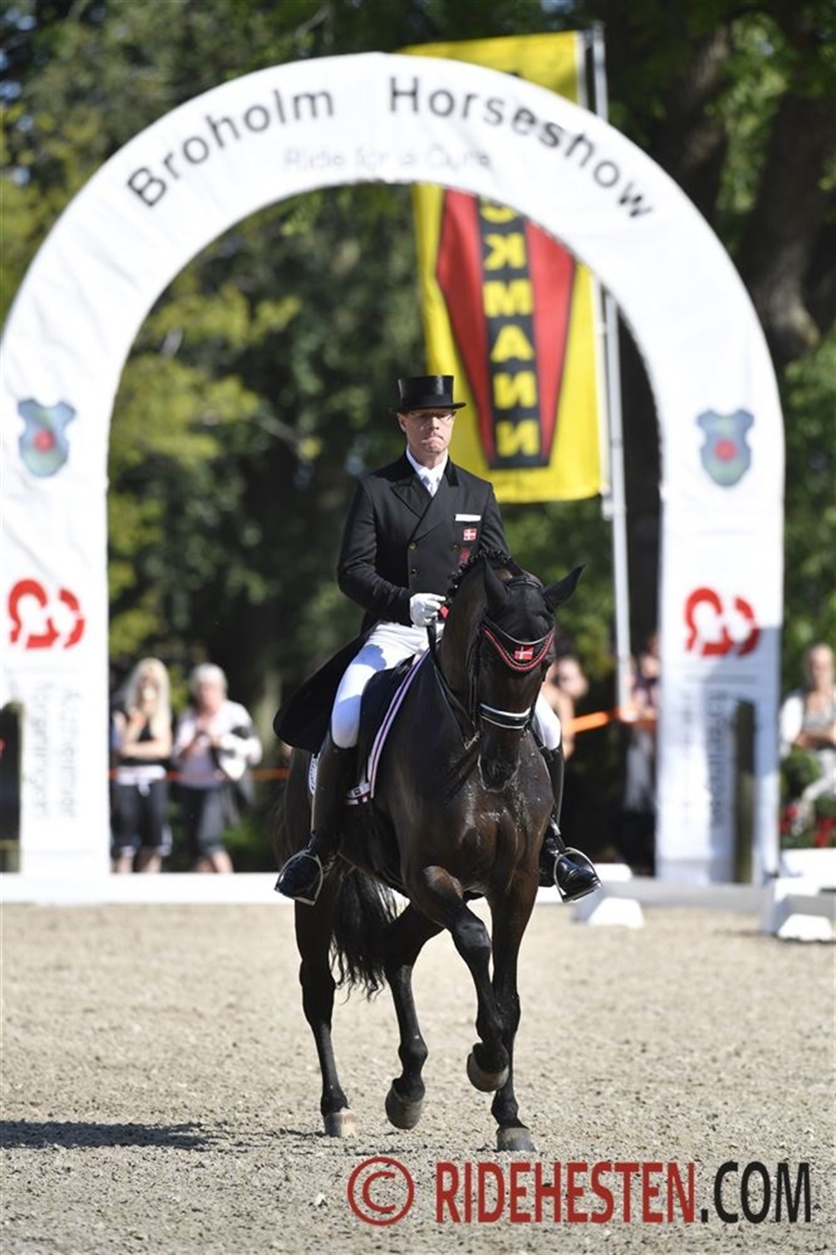 Daniel Bachmann Andersen kom til finalen på en samlet andenplads, men den blot 9-årige avlshingst Blue Hors Don Olymbrio fik nogle fejl i dagens kür, men samtidig vist fine takter til fremtiden. Med 75,425% måtte de tage til rakke med fjerdepladsen, lige udenfor medaljerækken, for Anders Dahl og Selten HW fik knapt et procentpoints mere for deres kür og i den tætte kamp om medaljerne var det nok til at sikre sejren med 0,2 procentpoints forspring over tre dages konkurrencer.