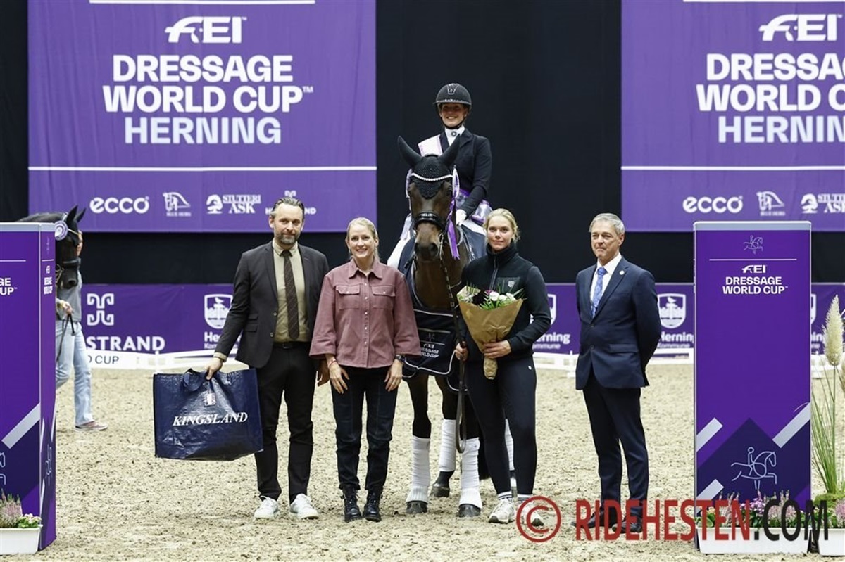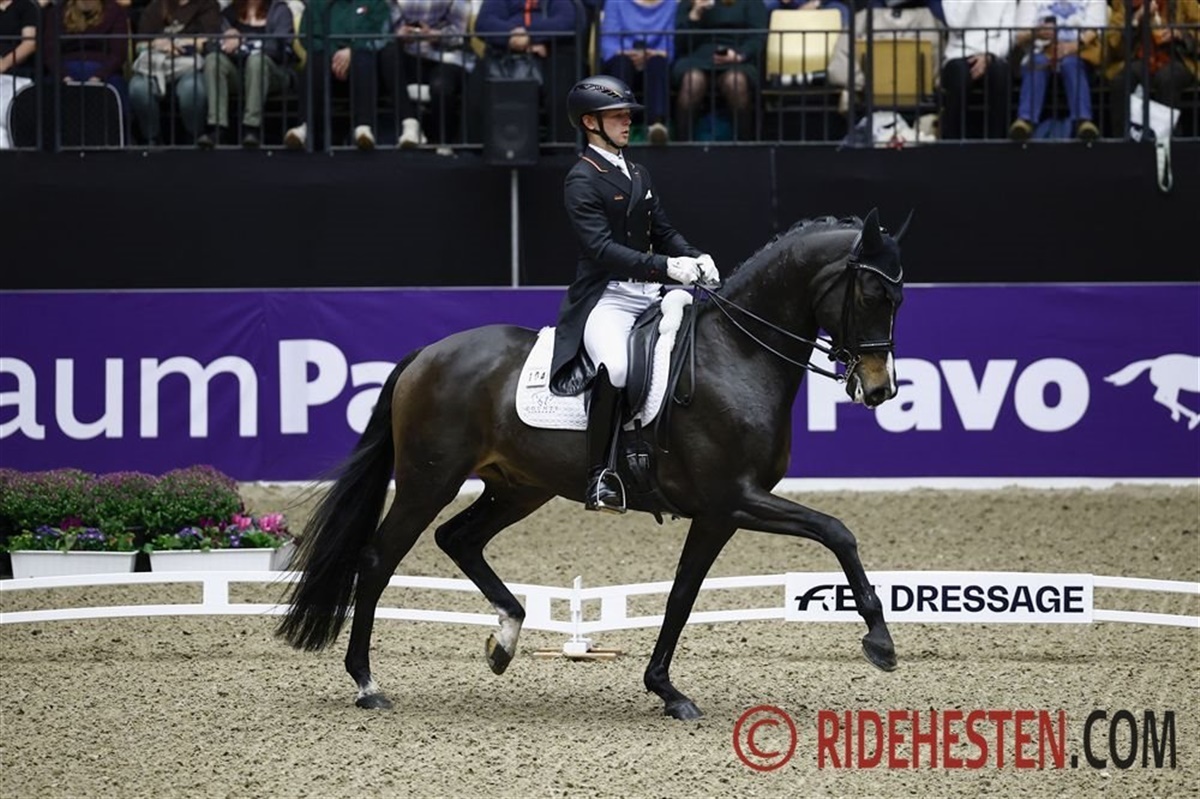 Rikke Dupont og Grand Galiano e. Grand Galaxy Win/ Blue Hors Don Schufro (opdr. Lotte og Gert Buchhave) havde deres World Cup-debut i dag og blev nr. 9 med 71,108%, men parret er ikke uvante i Boxen. De vandt nemlig Dansk Varmblods Unghestechampionat i dressur, da vallakken var fem år, og det er jo dejligt at se sådan en hest gå hele vejen til topsporten, hvor han allerede i en alder af ti år gør det så godt.