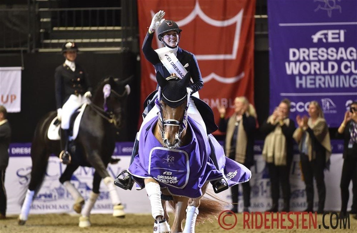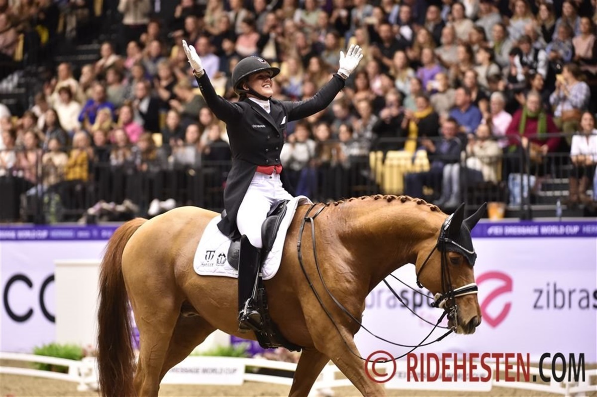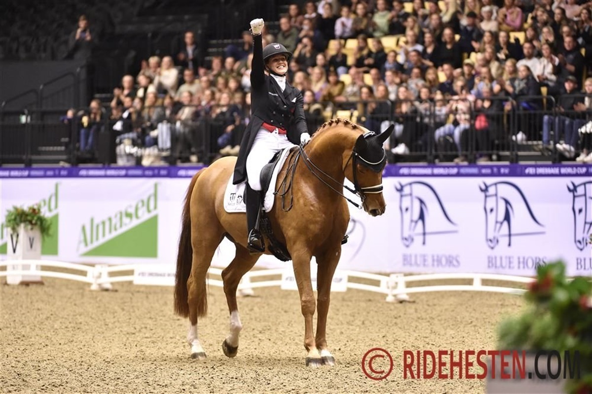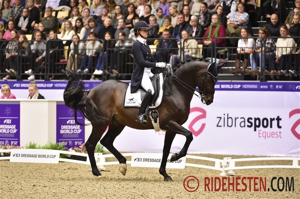 Den score lagde pres på næste rytter i Boxen, Cathrine Dufour med Atterupgaards Cassidy e. Caprimond/ Donnerhall (opdr. Atterupgaard). Denne World Cup-kvalifikation er et af nu 18-årige Cassidys sidste stævner, men han tog sig ud som en hest, der sagtens kan være med – og det beviste han i deres stemningsfyldte kür, hvor han dansede sig igennem øvelserne og med et mere modent udtryk uden ungdommens spændinger.