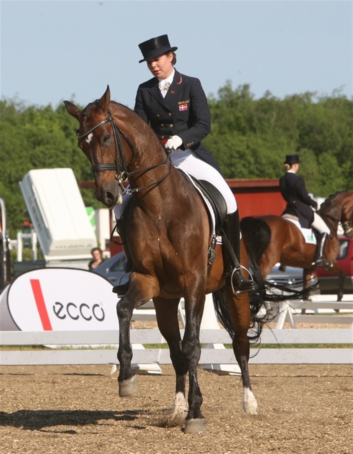 I dag blev første afdeling af mesterskabet redet under en strålende sol. I morgen rides anden afdeling, og derfra går de samlet 15 bedste for henholdsvis juniorer og ungryttere videre til mandagens finale, som rides i kür. Resultat efter første afdeling: DRF mesterskab junior 1. Cathrine Dufour/ Cadillac 69,6% 2. Cathrine Dufour/Aithon 68,2% 3. Camilla Blicher/Adhesive´S Hudson 67,8 % 4. Christina Møller/Celester 67,4 % 5. Nanna Skodborg Merrald/Millibar 66,9 % 5. Cecilie Stengelshøj Madsen/Laurentius 66,9 % 7. Simone Ahlers Pedersen/Cavalér 65,9 % DRF mesterskab ungryttere 1. Carina Nevermann Torup/Come Back After 8 69,7 % 2. Sofie Jeppesen/Robin 68,5 % 3. Anne K. Elkjær-Holm/Bernstein 67,9 % 4. Camilla Ploug Larsen/Königs Kronos Ks 67,3 % Se alle resultater på Kolding Rideklubs hjemmeside,
