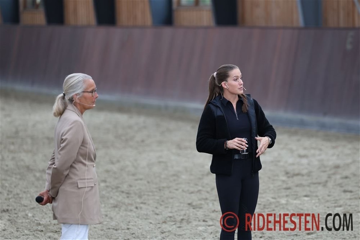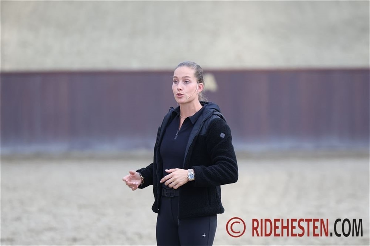 – Ingen heste går igennem deres uddannelse uden at lave fejl. Vi er to levende væsner, der skal spille sammen, og derfor sker der småfejl, og det er helt ok, sagde hun og anbefalede på det kraftigste, at så snart hesten har kvitteret med noget godt, så giver man den en skridtpause. Bare lige kort, så den kan få lidt luft, syren ud af musklerne og på den måde også fik ros for det, den gjorde.