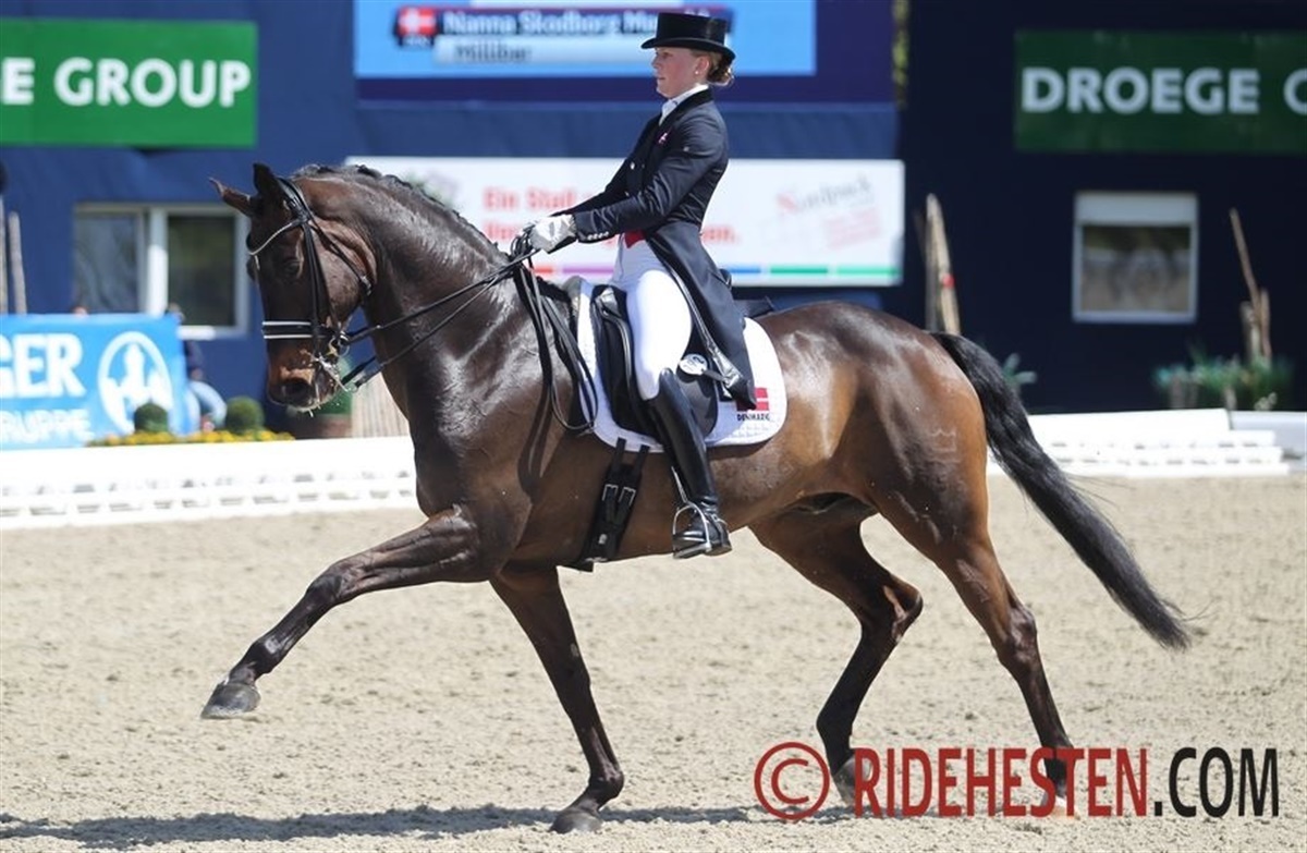 Nanna Skodborg Merrald var for første gang tilbage i international sammenhæng med Millibar e. Milan/Liberty Dane (opdr. Fritz Jensen) efter en lang skadespause. I dag indløb der desværre for mange fejl til, at ekvipagen kunne være med på deres vanlige niveau - de opnåede i dag 63,640%. Agnete Kirk Thinggaard og Cassio e. Conteur/ Calato leverede et godt ridt, der blev belønnet med 67,320%.