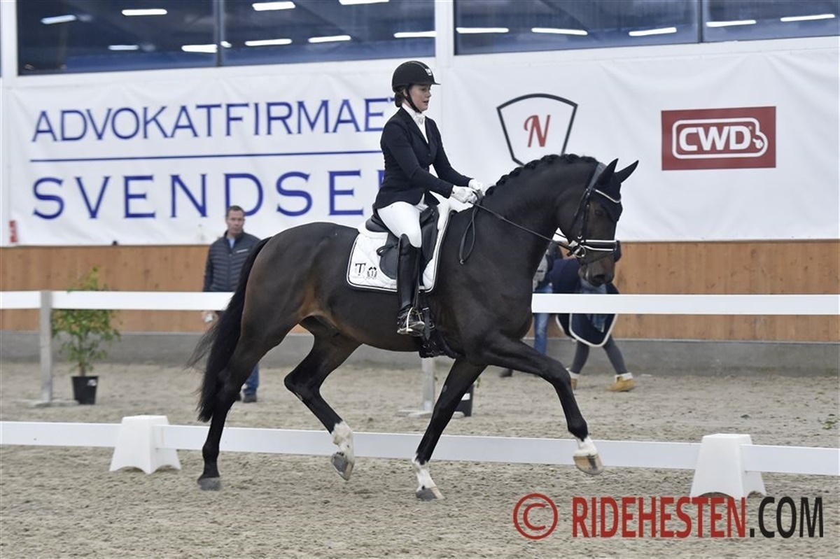 Nummer to blev Louise Fjord Kjærsgaard på Kammerherre Gårdens Lex e. Lagavulin/Carano fra Familien Kjærsgaard, som blev belønnet med 4 x 8,0 og samlet 800 points. Dagens tredjeplads tilfaldt Simone Vinther på Abildgaards Synergi e. Cape Town S/Lorentini I fra Ingeborg og Jørgen Abildgaard som fik 8,5 galop og ridelighed.