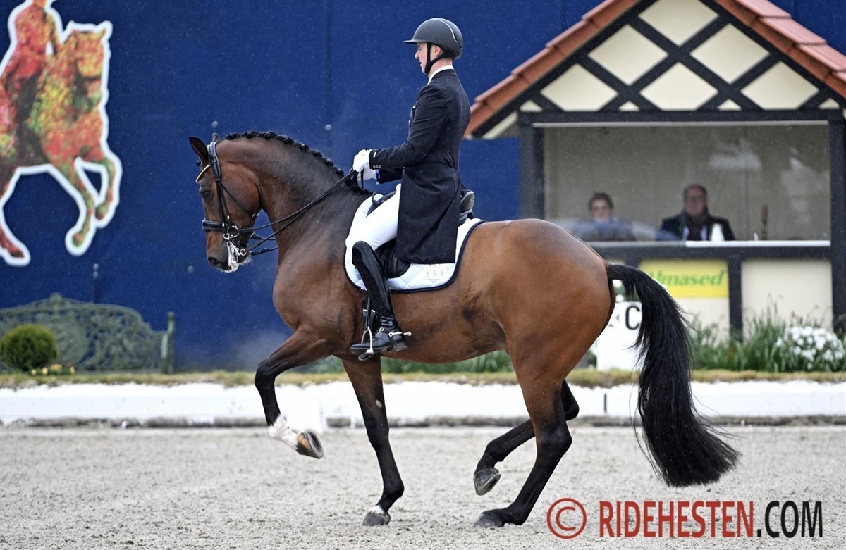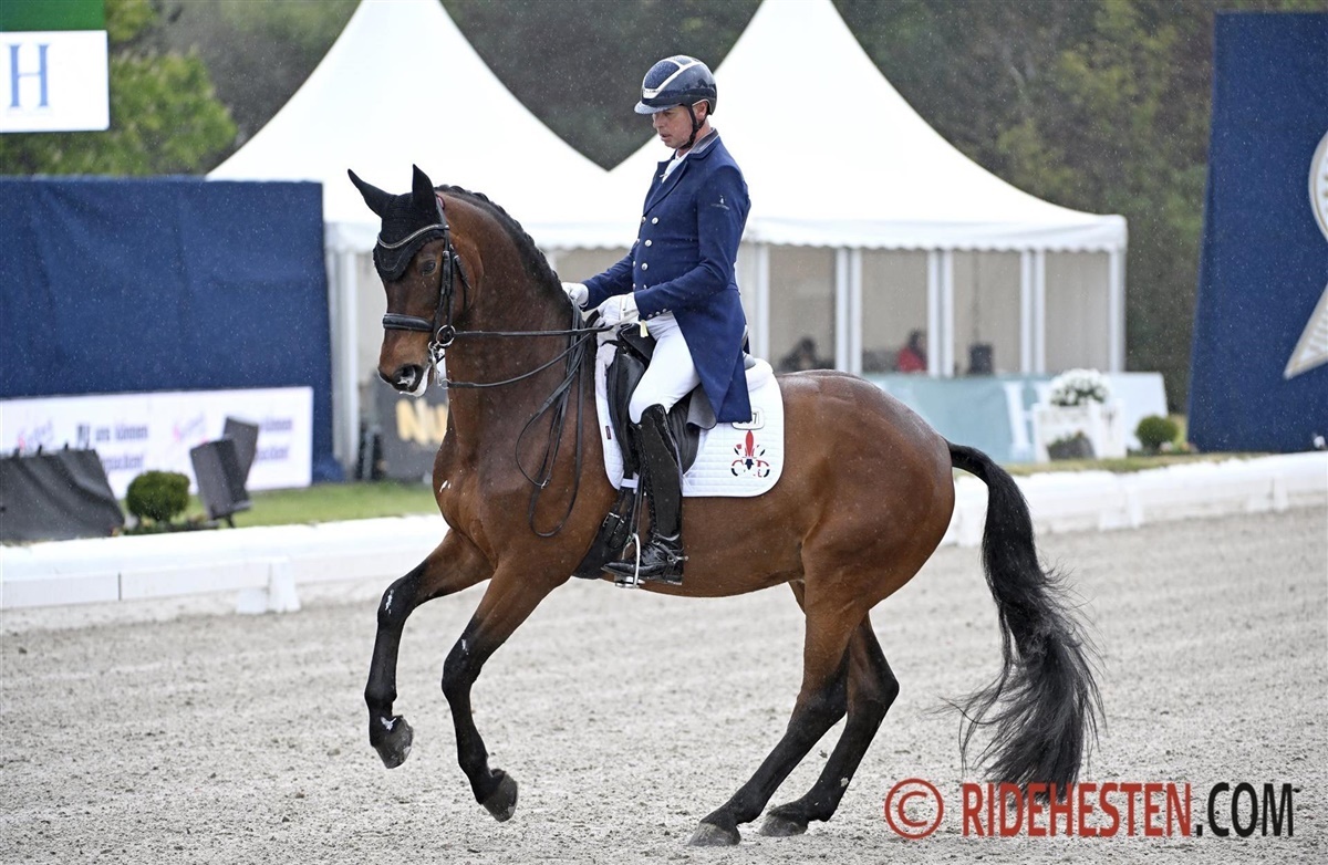 Carl Hester er som altid et pragteksemplar, der rider så fint og nydeligt på samtlige heste. Med Fame e. Bordeaux/Rhodium var han sidste år en del af det guldvindende britiske hold ved EM i Riesenbeck, og mon ikke han er at finde på det hold, som briterne sender afsted til OL om et par måneder. Med 74,47% red han sig i dag ind på tredjepladsen.