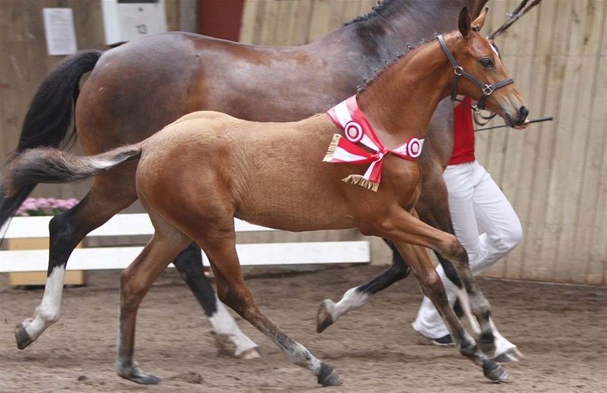 Følskuet i DV Region 7 blev ligesom sidste år afholdt på Hjallerup Rideklub, og da regnen øsede ned næsten hele dagen, blev arrangementet - til manges glæde - flyttet indendørs i rideklubbens dejlige hal. Følgende seks føl blev udtaget til Dansk Varmblods Eliteskue i september: Bedste dressurbetonede hoppeføl Kat. 67: Falulah Ladegaard e. Solos Landtinus / Come Back II Ejet og opdrættet af Jørn L. Kristoffersen, Tjele 2. dressurbetonede hoppeføl udtaget til Eliteskuet: Kat. 71: Trendy e. Tailormade Temptation / De Noir Ejet og opdrættet af Lisbeth B. Andersen, Skals Bedste dressurbetonede hingsteføl Kat. 57: Zephyr Odalsgaard e. Blue Hors Zack / Blue Hors Don Romantic Ejet og opdrættet af Lise Maria Poulsen, Svenstrup 2. dressurbetonede hingsteføl udtaget til Eliteskuet: Kat. 17: Fireball Macohl e. Fürstenball / Rosentanz Ejet og opdrættet af Lise Rasmussen, Skørping Bedste springbetonede hoppeføl Kat. 8: Flora Sem e. Favorit Ask / Charmeur Ejet og opdrættet af Esben Pedersen, Ålestrup Bedste springbetonede hingsteføl Kat. 5: HM Coubertin e. Coulthard / Intellect Ejet og opdrættet af Thomas Warmdahl Mikkelsen, Fjerritslev Dagens resultater vil inden længe offentliggøres på DV Region 7's hjemmeside, der kan ses via linket til højre.
