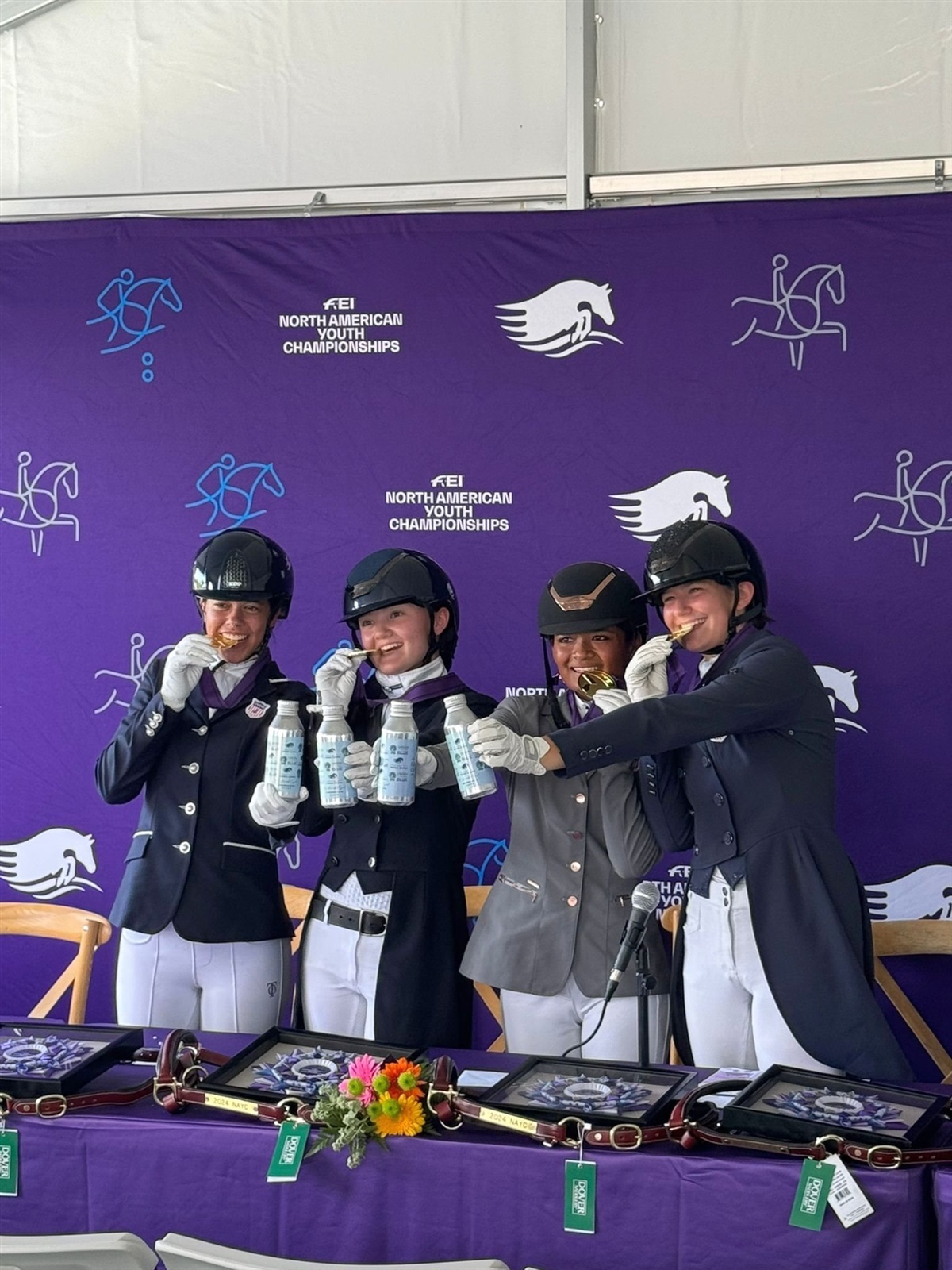 Ekvipagen har i denne weekend redet med i det nordamerikanske mesterskab, der vel bedst kan sammenlignes med Europamesterskabet på vores breddegrader - blot med den forskel, at USA er så stort et land, at det næsten udgør et kontinent i sig selv. Derfor går dysten mellem amerikanske ryttere, der rider for deres hjemregion samt canadiske ryttere. Det har været en enestående weekend for Woodcock og den røde hoppe, der kan rejse hjem med tre guldmedaljer i bagagen. I onsdagens holdmesterskab for juniorerne var det Woodcock, der sammen med sine tre holdkammerater red sejren i hus for deres region, nemlig region 3, som består af stater fra det sydøstlige USA.