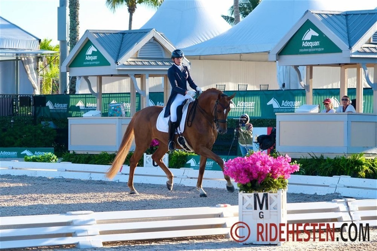 Også den 13-årige DV-hoppe Holts Le'Mans e. L'espoir/ De Noir (opdr. Kirsten Holt Rasmussen) deltager til det nordamerikanske mesterskab og rides af Ella Fruchterman, der stiller til start blandt U21-rytterne. De blev lørdag nr. 7 med 66,18% i ungrytternes individuelle mesterskab, og gentog 7. pladsen med 69,90% i gårsdagens kür. Hoppen er tidligere blevet redet af den danske berider Mette Svare Ehlers, der uddannede hoppen til Prix St. George-niveau. Ella er desuden også den heldige rytter på Hannah Montana W e. Blue Hors Doolittle/ Sidney (opdr. Henrik Wiborg), som er redet gennem mange år af danske Sanne Svendsen. Du kan læse meget mere om Ella i denne portrætartikel fra 2022.