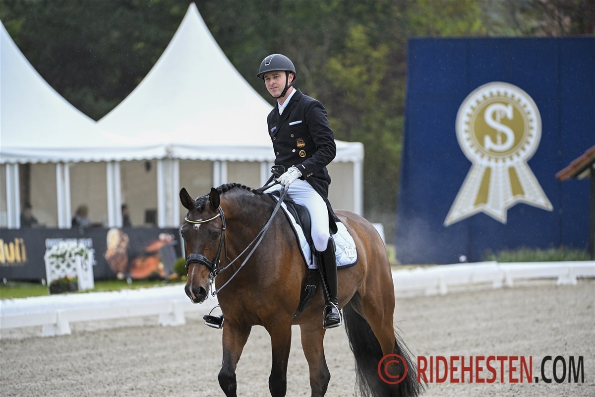 Den ene Tiffanys Diamond e. Tailormade Temptation/His Highness (opdr. Hansenberg) sikrede sig sejren i klassen med finske Henri Ruoste i sadlen. Sammen opnåede de 71,660 procent, hvilket var nok til at sikre Ruoste den bedste plads på podiet. Henri Ruoste er blandt Finlands bedste ryttere, og sidste år deltog ham og Tiffanys Diamond ved OL i Paris.