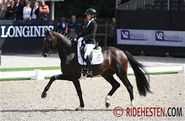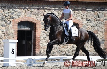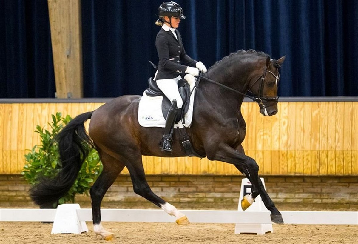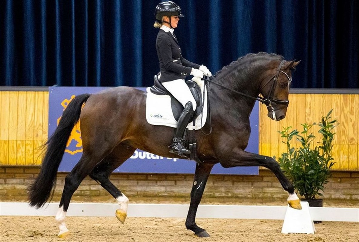 Santiano rides af hingsteholder Joop van Uyterts hustru Renate van Uytert, der sidste år kvalificerede Santiano som 4-års til finalen i den hollandske Subli Cup. Finalen er netop er afholdt, og her blev ekvipagen med 79,6% nr. 3 blandt 5-års hestene.