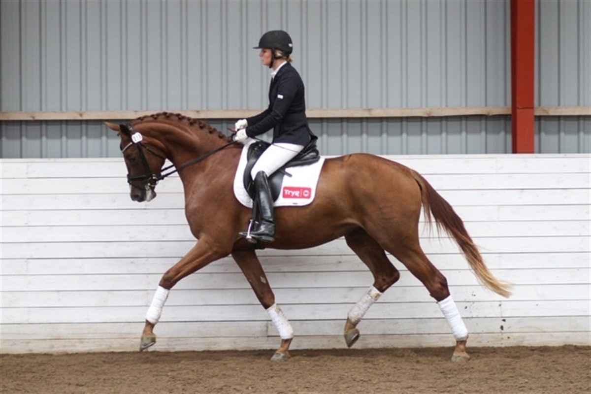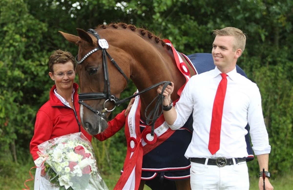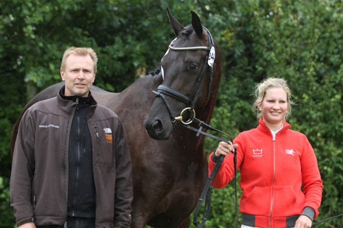 Himmel og hav stod i ét over Team Cabe i dag, men det kunne langt fra ødelægge dagen. Hele arrangementet blev rykket indendøre og trods forsinkelsen, forløb dagen uden problemer. Dagens bedste dressurbetonede hoppe for de 3-års, blev kat. 213; Qupé e. Quaterback/Rosentau, ejet og opdrættet af Hanne Lund og Henrik Hansen, Solrød Strand. Den stortgående hoppe opnåede en samlet score på 806,5 point og blev hermed udtaget til Eliteskuet, som finder sted d. 7. – 9. september på Vilhelmsborg. Hoppen med dagens højeste afprøvningstal blev kat. 208, Trelsegårds Sensation. Hun opnåede hele 856,5 point Dagens fløj for de 4-års blev kat. 244, Zala Mi e. Blue Hors Zack/Solos Landtinus, som er ejet og opdrættet af Steen Bo Larsen i Skensved. Hoppen endte med i alt flotte 762,5 point og er ligeledes udtaget til Equsana Eliteskue. Eksteriørkåring: Fløjen ved eksteriørkåringen for de 3-års hopper blev kat. 245; Sandgårds Bella Donna e. Blue Hors Don Romantic/Blue Hors Silver Moon. Hoppen er ejet og opdrættet af Eva og Sten Christensen i Stensved. Det var kat. 257, Stærebogårds Torina e.Gagarin/Templewind XX der blev fløj for de 4-års og ældre hopper. Den dejlige hoppe er avlet ved Stutteri Stærebogård og ejes af Henrik Dall og Vicky Vad Gurrelund i Brøndby Strand. Hoppen var den eneste på holdet der opnåede DH. For de 4-års og ældre med mor eller far som forædler, blev fløjen kat. 251; She’s Anita XX, som er ejet af Jørn Svan-Olsen i Lundby. Hoppen har fuldblodsaraberen Sherzad XX som far og National Zenith XX som morfar. Ved dagens eksteriørkåring med løsspringning for de 3-års blev fløjhoppen kat. 271, Nova Prydsholm e. Partydance/Quattro og er ejet og opdrættet af Per Andersen i Klippinge. For de 4-års og ældre, blev den storspringende kat. 277; Its’s All About Time e. Kheops St. Lois/Leendert, udtaget til Eliteskuet. Efter nogle imponerende spring ved løsspringningen, endte hoppen med et 9-tal i helhed. It’s All About Love er ejet og Opdrættet af Linda Neumann og Frank Torndyb, Slagelse.