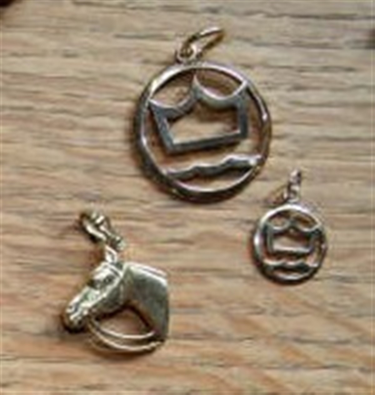 Ved indbruddet i weekenden er der blevet stjålet en del smykker. Deriblandt 3 vedhæng – 2 stk. speciellavede med DV’s logo ”Kronen og bølgen” samt et hestehoved. Se billedet. Disse 3 vedhæng er jo lidt specielle, så hvis I skulle ”støde” på dem eller se dem ved evt. en guldsmed, må I meget gerne kontakte Ruth Knudsen på tlf. 40 16 46 21.