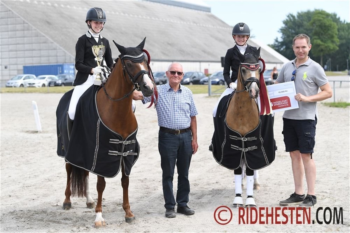 I dag stod Hans Jørgen Nørgaard, som er chefberider hos Aarhus Rideklub, for at overrække priserne til de to dygtige piger. Det gjorde han i samarbejde med Ejner Madsen, og begge ryttere modtog fine ærespræmier og 10.000 kr.