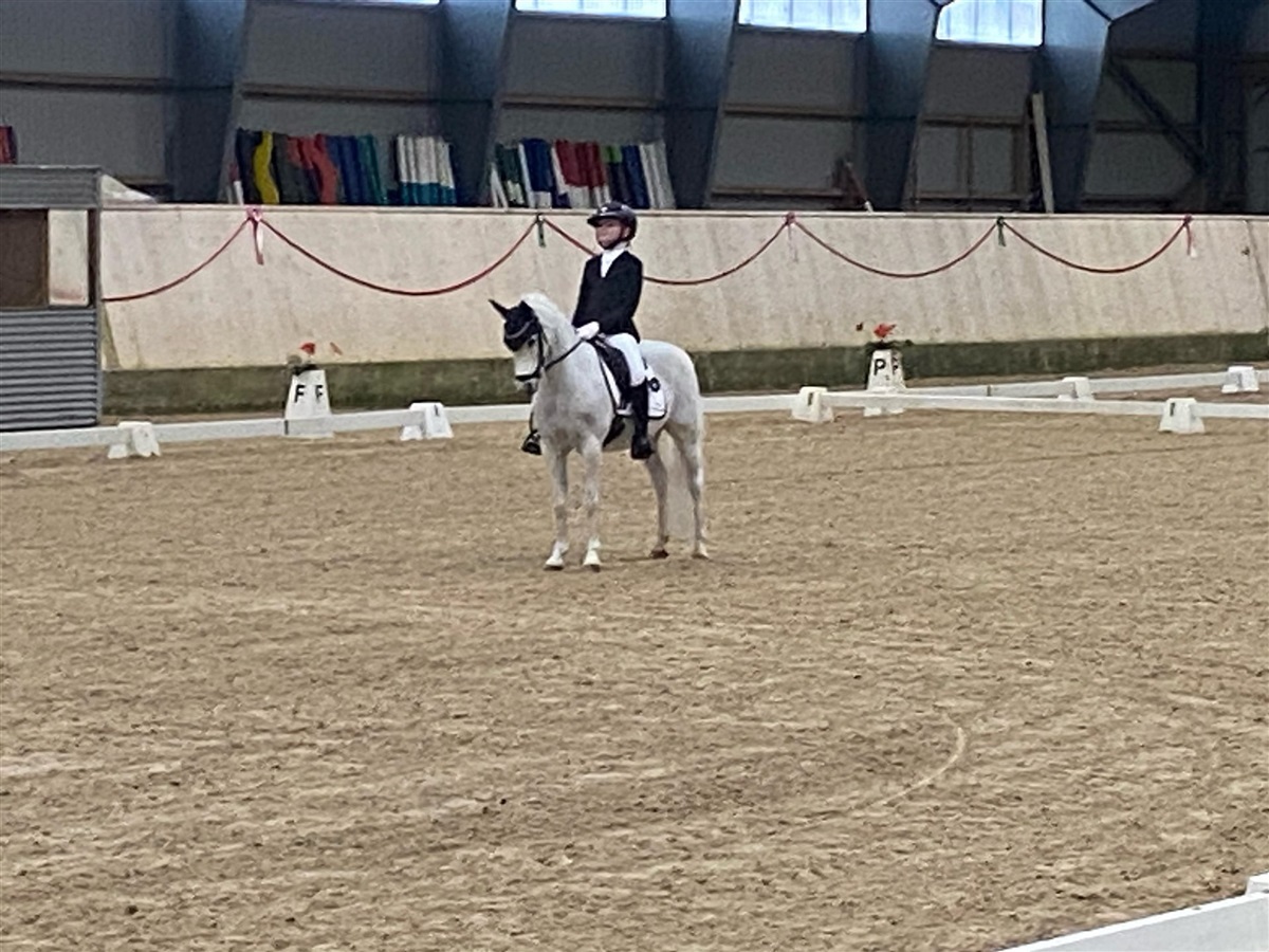 I dag var Ea den allerførste rytter på banen ved stævnet i Herning, og det med netop ponyen, som hun vandt klassen med. Dermed red Ea året i gang på bedste vis.