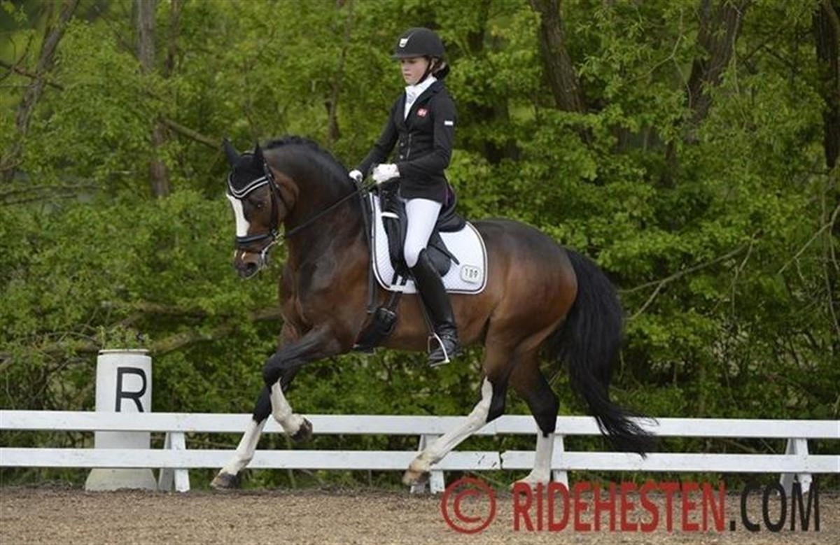 - Farbenfroh, som jeg skal starte ECCO Cup-finalen på, har jeg haft i snart 2 år, og vi har startet bl.a. i Hagen, EM i Irland m.m. Han er en meget frisk og energisk pony og har lige det ekstra gear, som jeg godt kan lide. Han er 11 år og stadig i rivende udvikling.