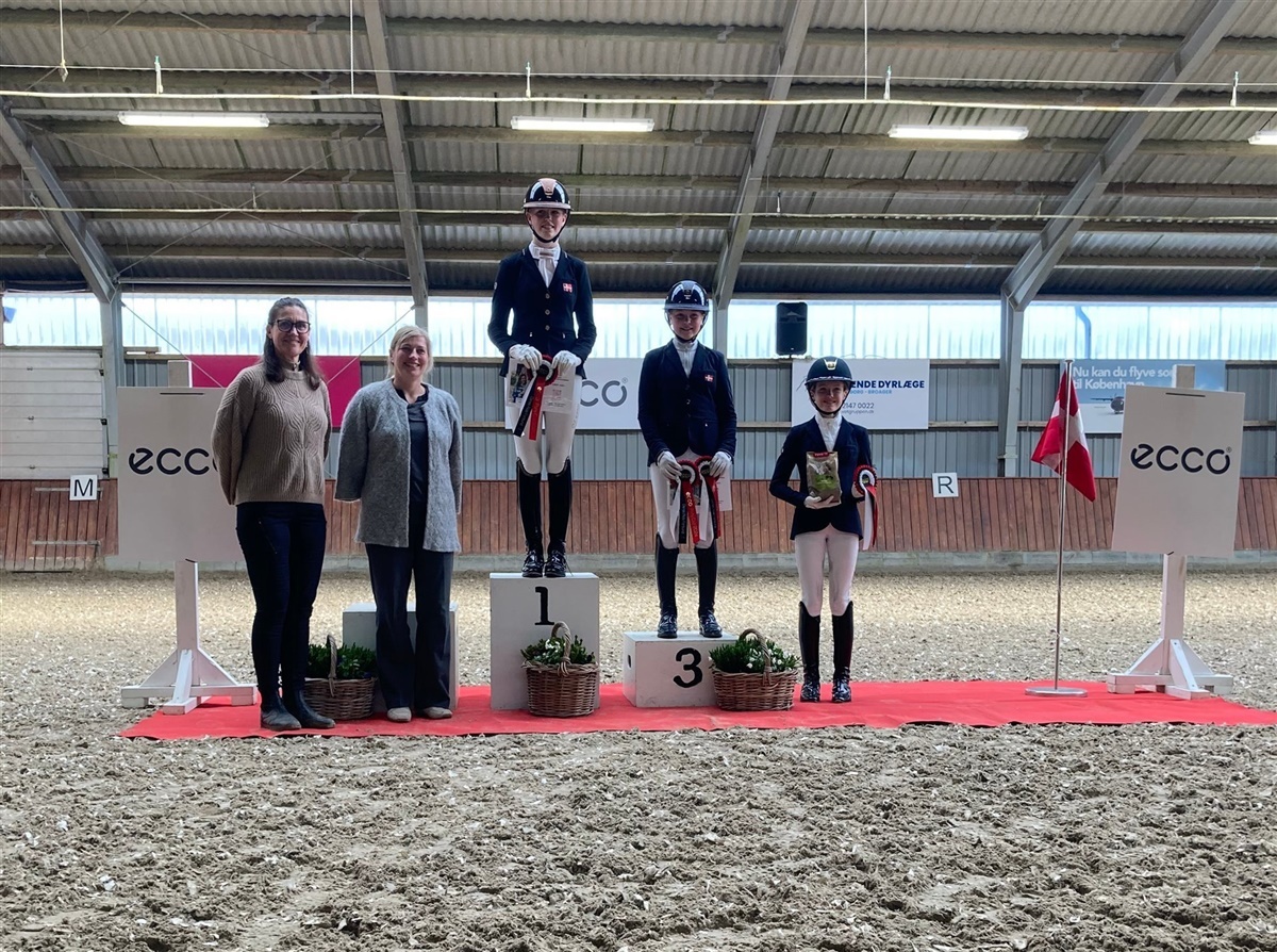 ECCO Cup-klassen for kategori 2-ponyer blev redet i løbet af eftermiddagen i dag. 17 ekvipager var til start i PRT-klassen, men det blev Amalie Juliane Danvad Fredbøg og Spirit-Kick e. Clausholm Donatello/ Attention (opdr. Anita Andersen) der sejrede med 72,564%.