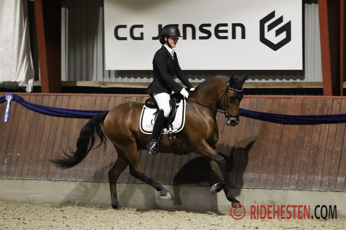 På tredjepladsen blev det Liv Jensen Hodal med Shadows Creation of The Rock e. FS Champion De Luxe/Derano Gold (opdr. Kirsten Maria Schille), de red til 68,761%.