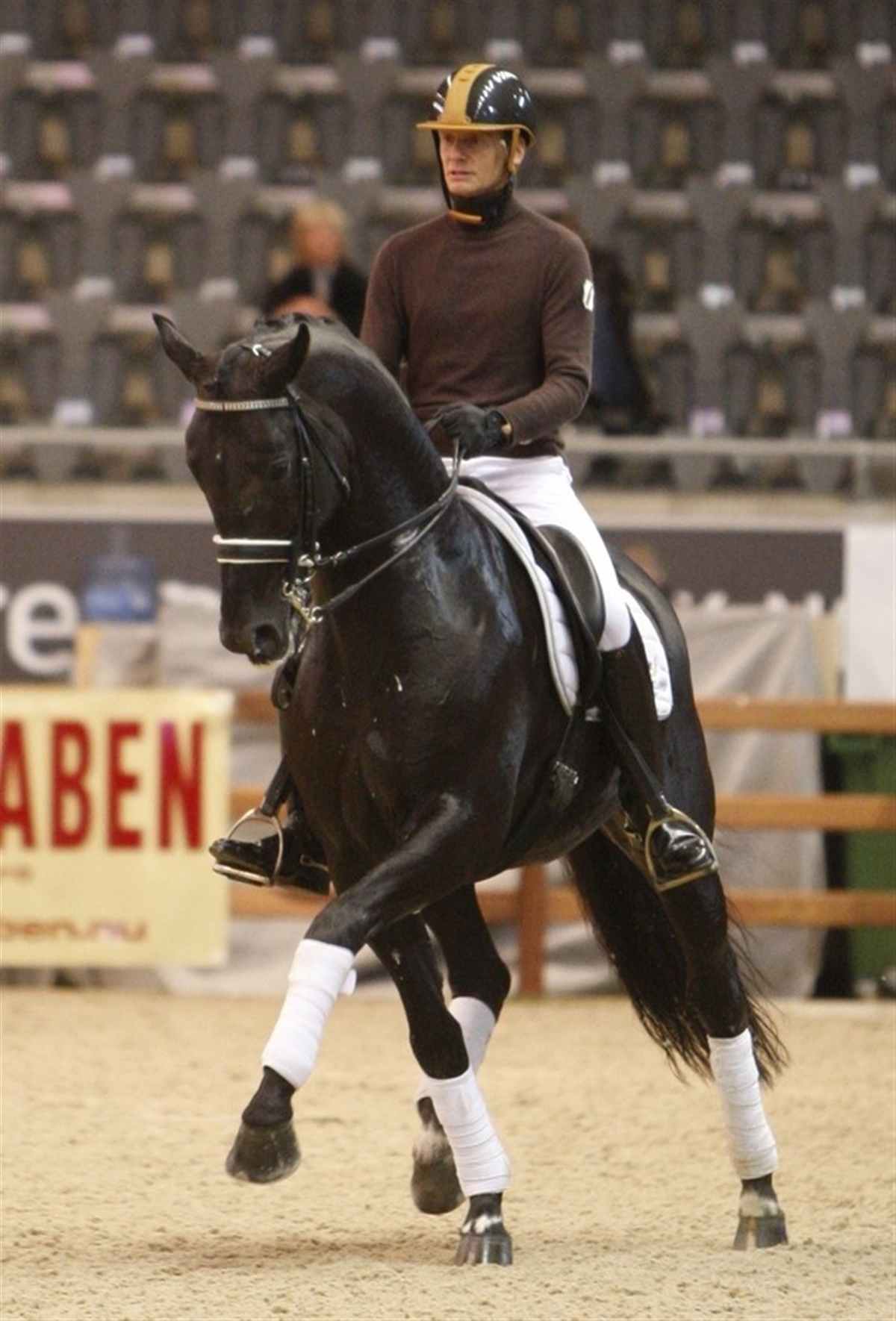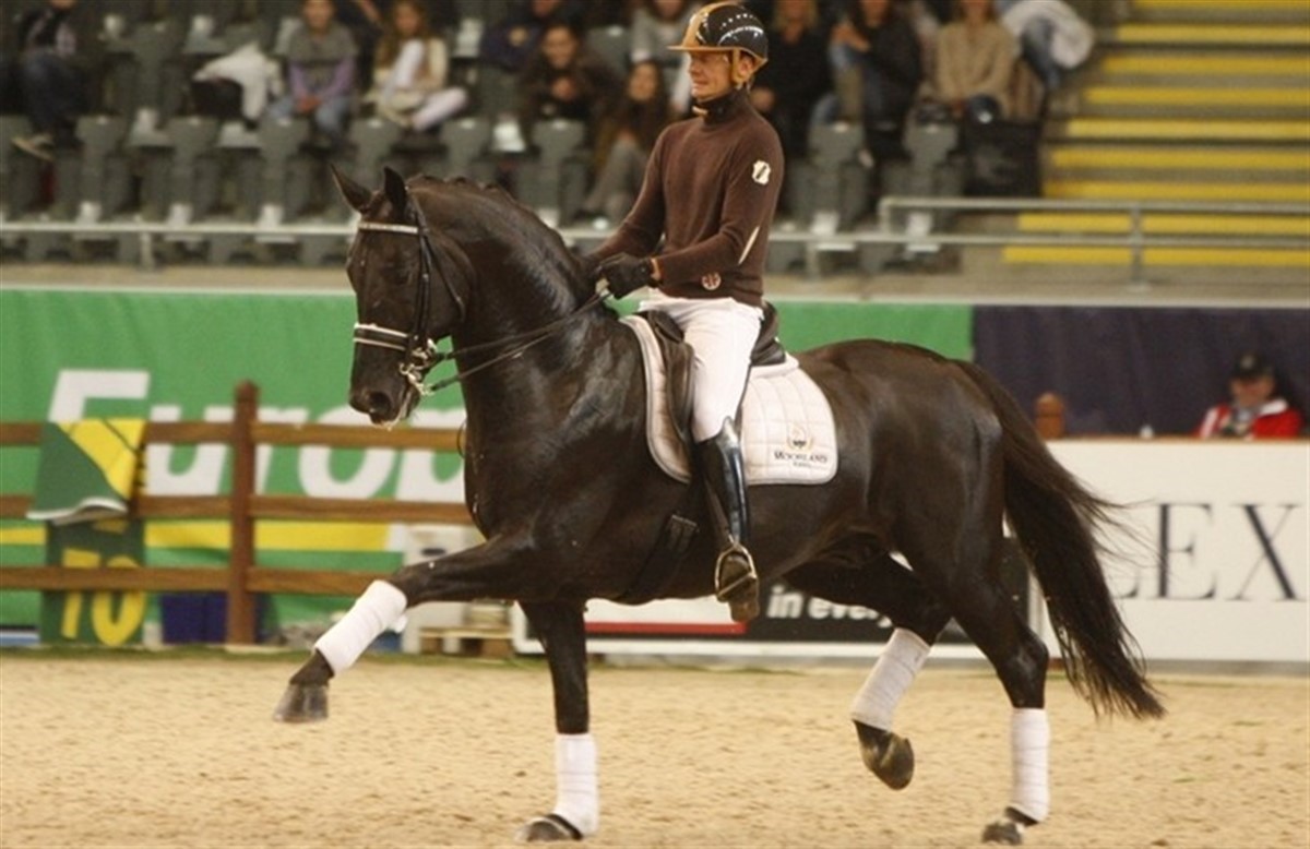 En af Edwards store, frembusende talenter er 5-årig hoppe på 178 cm ved navn Ambria. Hun er en af staldens yngste topheste og er efter 00 Seven/Osmium og beskrives som en følsom, stor hoppe med stor kraft og smidighed. Edward kalder hende for en ægte fremtidstopper. Edward præsenterer endvidere den i Holland så populære beskeler Voice (afbilledet), som er efter De Niro/Rohdiamant. Den nu 8-årige hingst blev tidligere redet af Imke Schellekens-Bartels og beskrives af Edward som hest med særligt stort talent for piaffe og passage. Hingsten var Edwards demonstrationshest i hans clinic i Oslo for nyligt. Endvidere er der i staldens lange række af store talenter også den 6-årige Zibway’s Texel e. Krack C/Democraat, der beskrives som en ægte kvalitetshest med en fantastisk trav. Texel vil fremover blive trænet af Edwards partner Hans Peter Minderhoud. Hingsten IPS United e. Krack C/Partout beskriver Edward som en travl avlshingst, der også er ved at være godt med i sin uddannelse, hvor han viser stort talent for både passage og skridt. Også i hoppen Moorlands Asther de Jeu e. Contango x Jazz ser Edward Gal et stort potentiale, ikke blot pga. hoppens gode karater og arbejdsvilje. Tag et kig på Edward Gals hjemmeside og se, hvad han har på vej.
