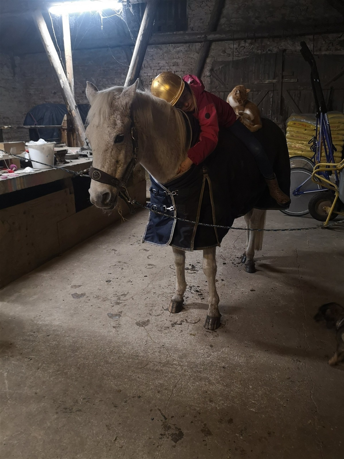Senere har Eepoota været hos andre ryttere, inden hun nu er vendt hjem til Marie, som igen har budt den skimlede pony velkommen.