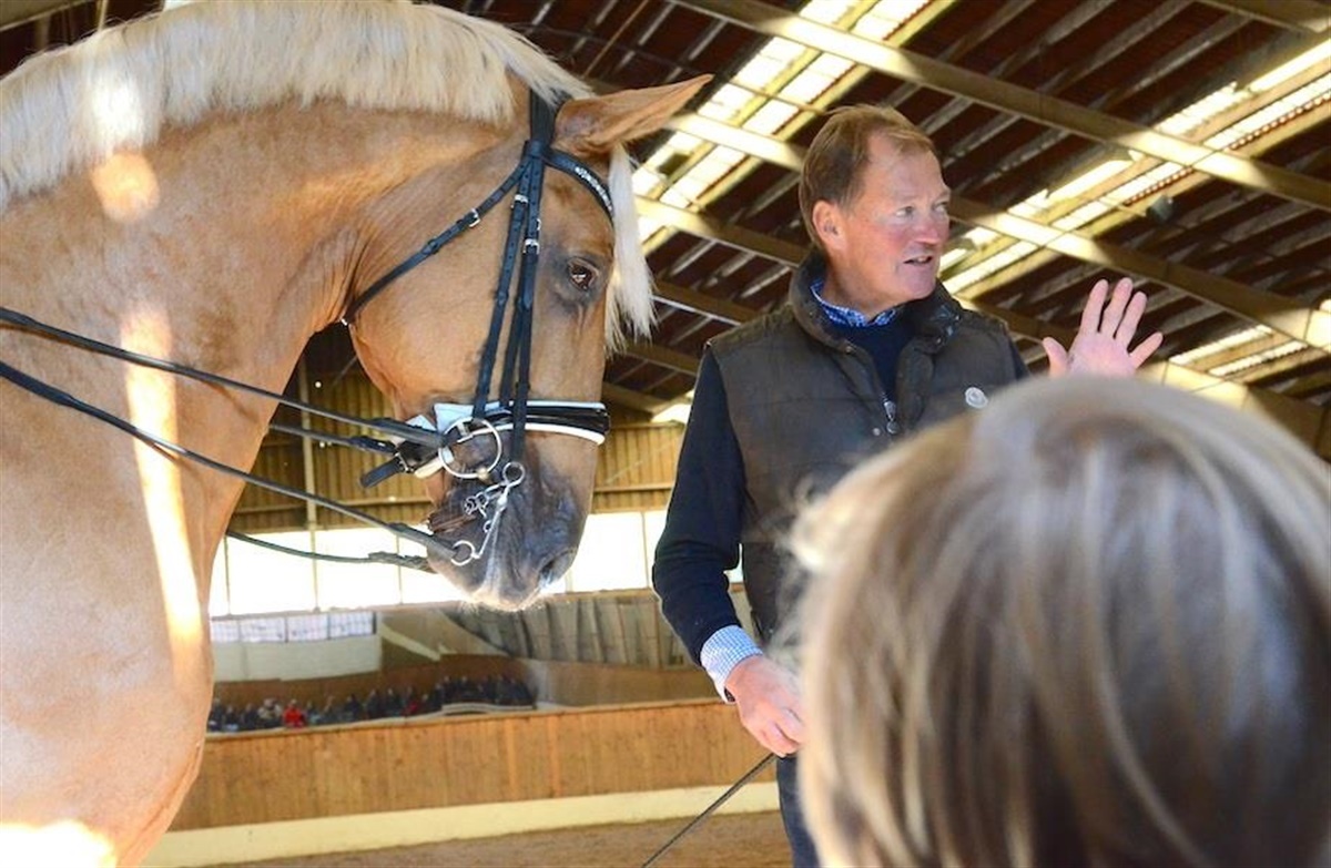 På det charmerende Søholt Gods åbnede Grethe og Hasse Hoffmann i tirsdags dørene til en spændende dressurclinic for eleverne på Aalestrup Naturefterskole.