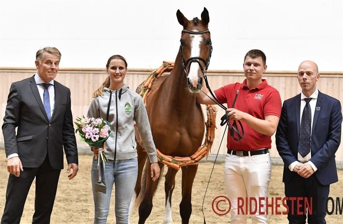 Hoppens imponerende afprøvningsresultat giver store forventinger til hendes fremtidige præstationer på konkurrencebanerne. For dette flotte resultat blev hun i dag hædret med titel såvel som en gulerodskrans samt ærespræmier fra Dansk Hesteforsikring og fra Ecco .