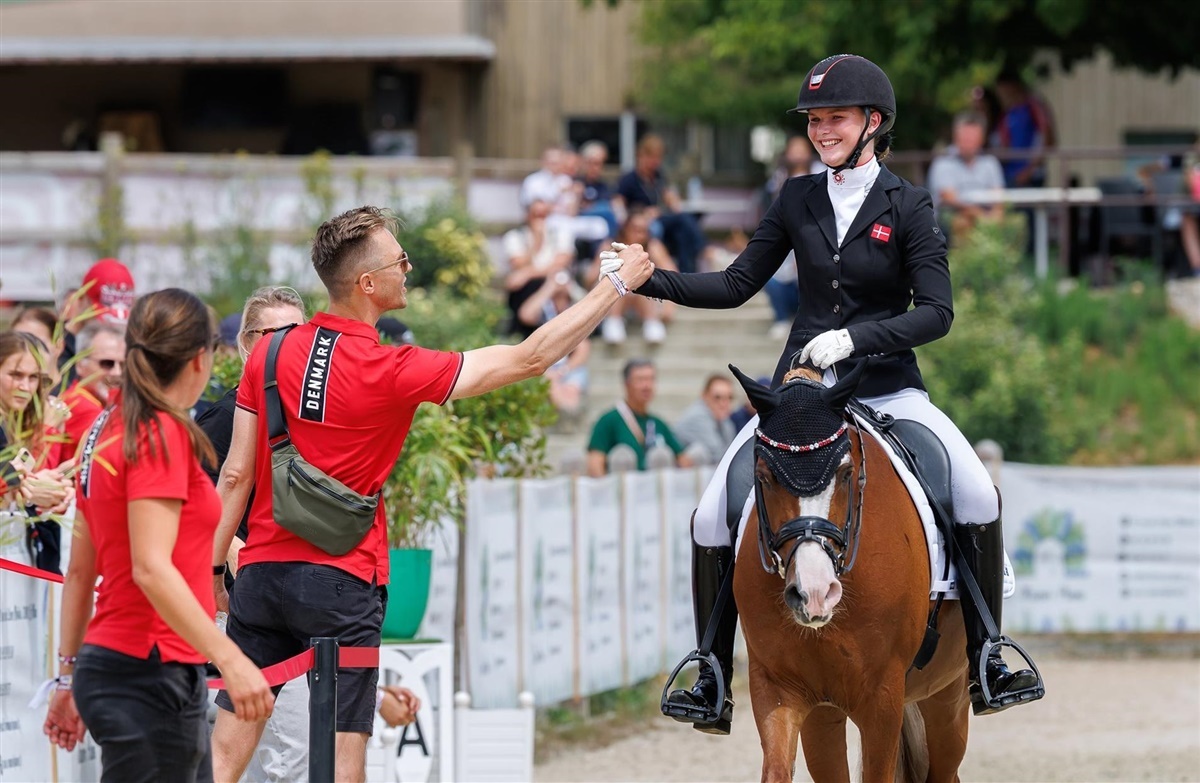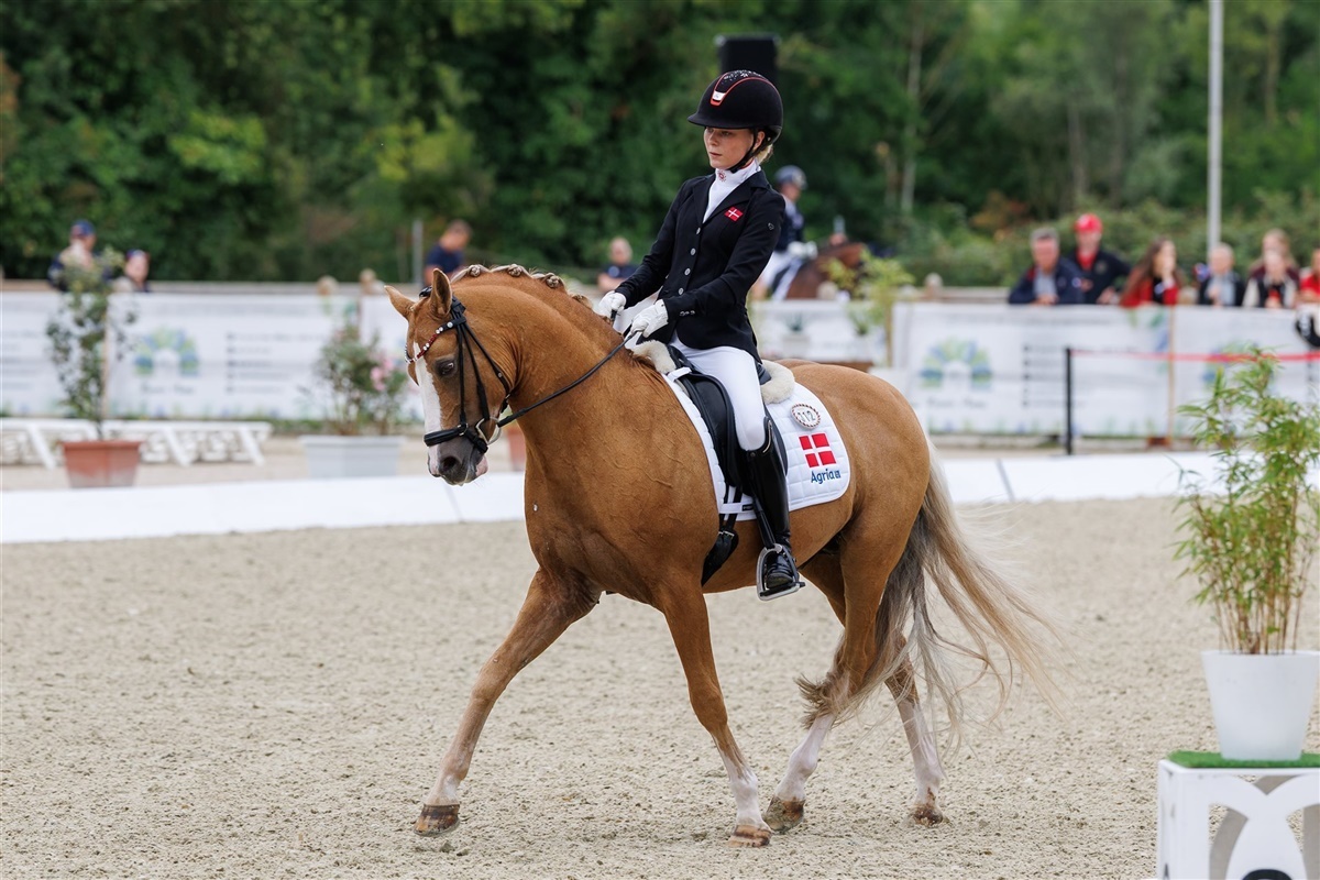 I dag gjaldt det så den anden halvdel af klassen, hvor første dansker red på banen omkring klokken 10.15. Det var nemlig Filippa Jæger Jensen med Top Vincento e. Top Vidal/ Nantano, som skulle gøre sit for at ride Danmark med i medaljekampen. Endnu en gang viste de danske ponyryttere, at de hører til helt i toppen, for med et flot program til 70,200% var det endnu et rigtig godt ridt til det danske hold.
