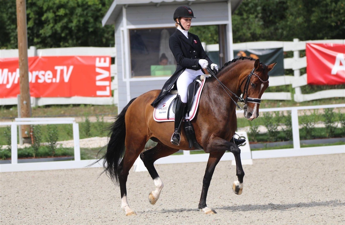 Alexander Yde Helgstrand og Grevens Sa Va e. Blue Hors Soprano/Blue Hors Romancier (opdr. Svend Skov Poulsen og Dorit Greve) endte lige efter Frederikke, som nr. 6. Alexander red et godt og præcist program til 71,412 %. Se en video af Alexanders ridt nederst i nyheden, som Andreas har delt på Facebook.