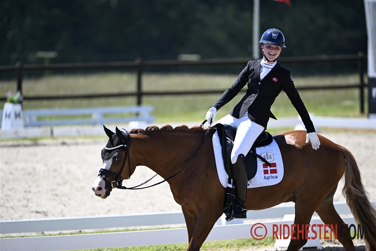 I går var Filippa Jæger Jensen og ponyen Crown Charm Of Royal e. Casino Royale K WE/ Monte Christo på banen og leverede et flot resultat med 72,143%, ligesom Victoria Bang Zindorff og Del Classico e. D-Day AT/ Dancer 7 ligeledes var på banen og red til flotte 71,857%. Med de to seje danske pigers præstation, lå Danmark til en foreløbig andenplads i mesterskabet.