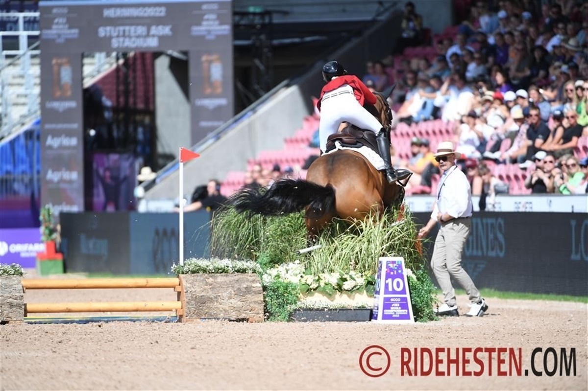 Efter flere dage med dressur på det store Stutteri Ask Stadium var det her sidst på formiddagen endelig tid til VM i springning. Den første runde går i en metode C, hvor det fungerer sådan, at hvis man får fejl, så bliver der lagt sekunder til ens tid. Derfor er det selvfølgelig vigtigt at ride fejlfrit, men samtidig kan man heller ikke ride for langsomt, hvis man vil være med i toppen.