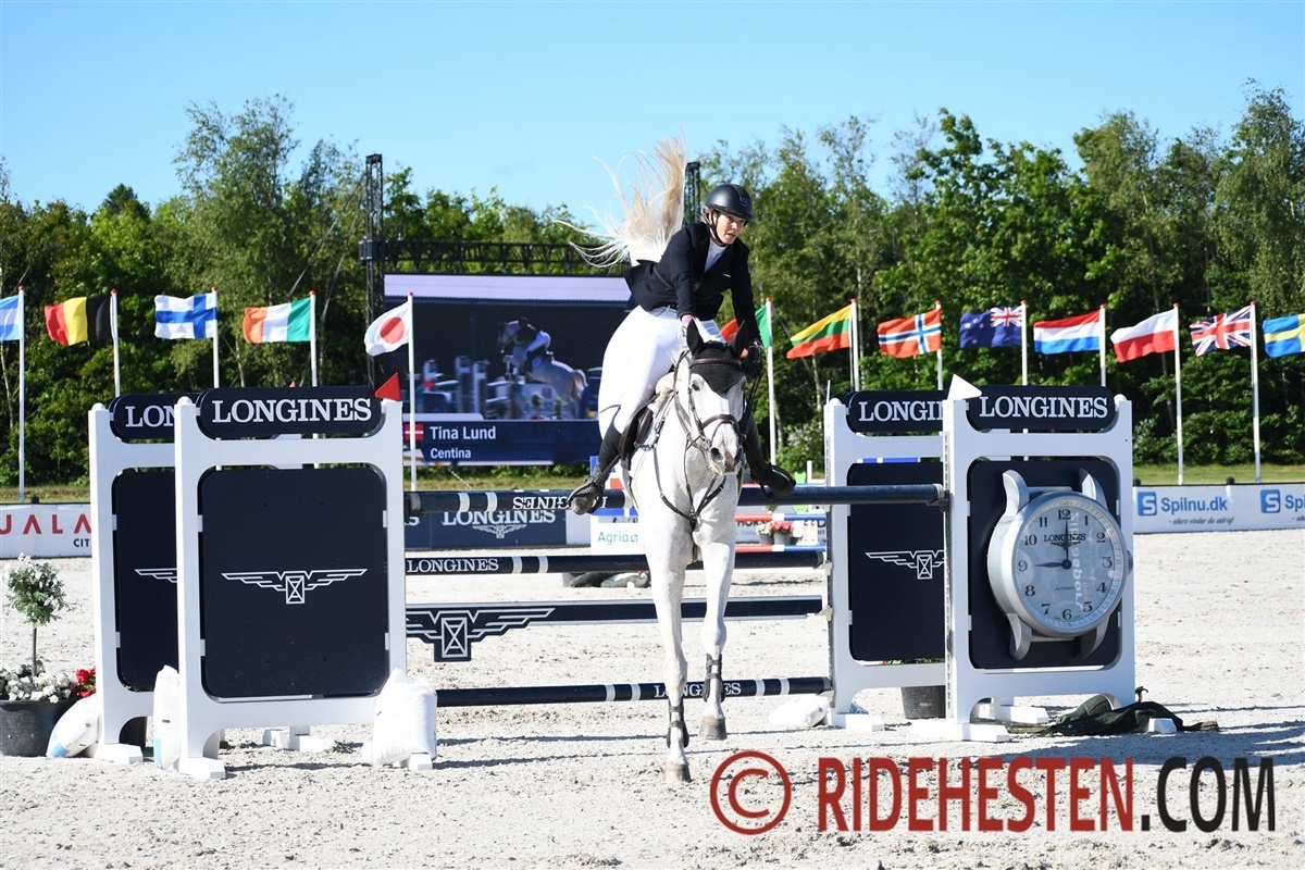 Tina Lund red sig ind på en flot femteplads i sadlen på den 19-årige Centina 10 e. Dobel's Cento/ Argentinus. Hun var ligeledes fejlfri og red anden fase i en tid på 28,56 sekunder.