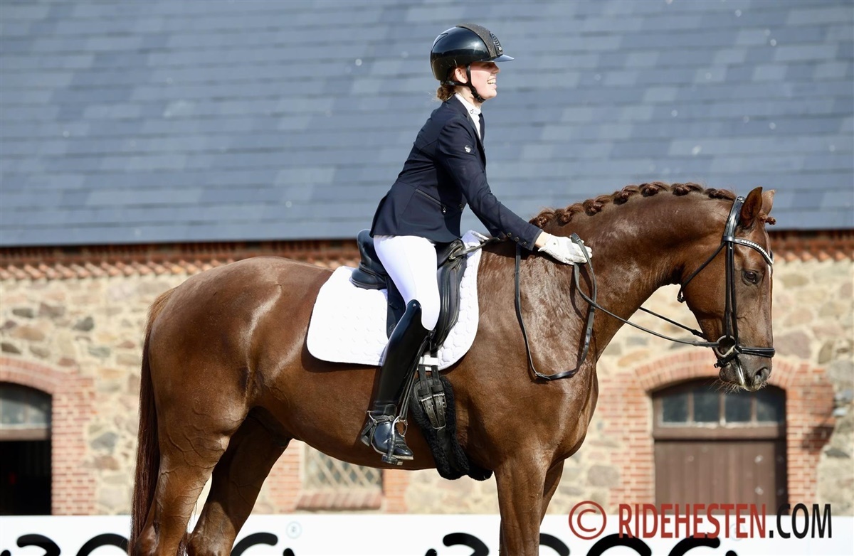 Tilridningen gik problemfrit, og Emma tabte sit hjerte til den store venlige vallak. Emma har de sidste seks år trænet hos Anemette Holm Petersen hos AT Dressage. Det er et privat træningscenter, så da Emma skulle vælge en rideklub, hun skulle starte for under Dansk Ride Forbund, valgte hun Dansk Varmblod Rideklub.