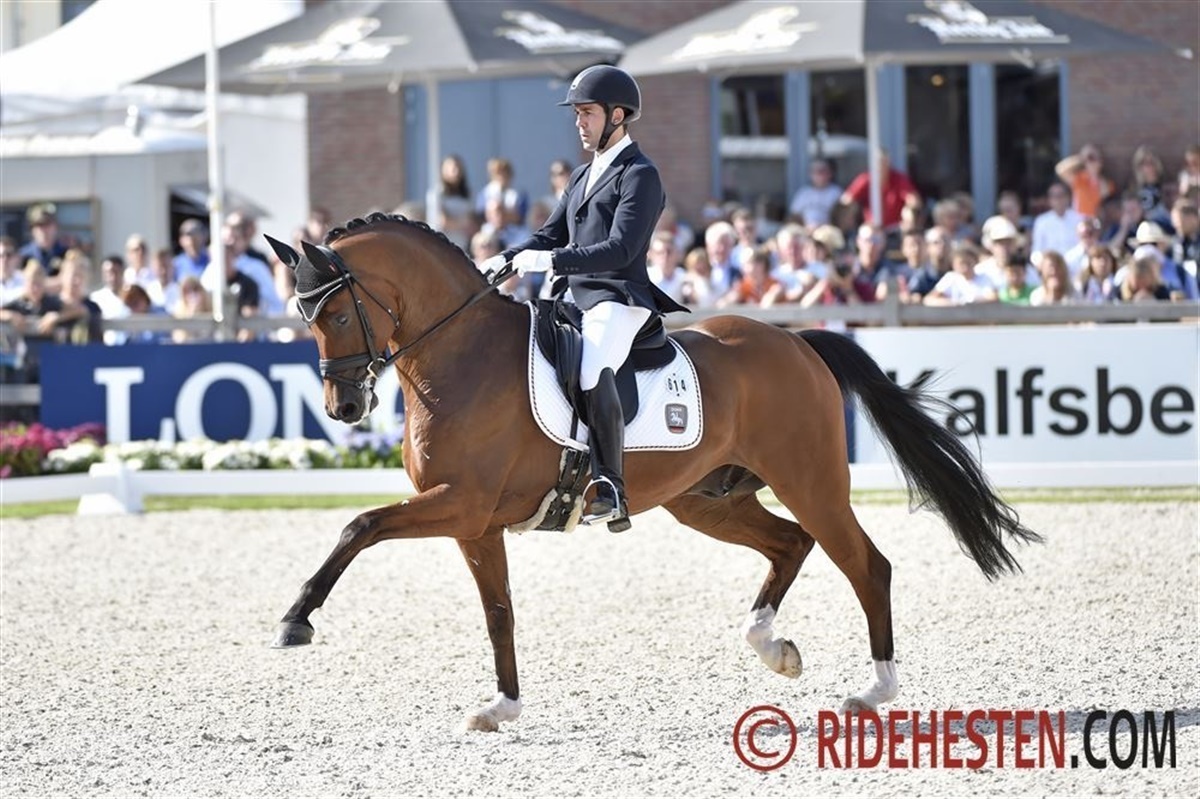 Danske Jacob Nørby Sørensen og Ellegaardens San Droneur e. San Amour/ De Noir (opdr. Stine Imhoff Thestrup) sluttede finalefeltet i dag på 15. pladsen med 7,72 point.
