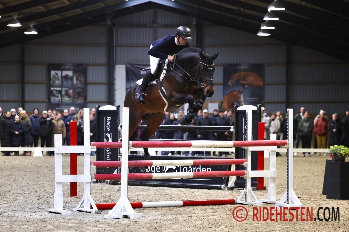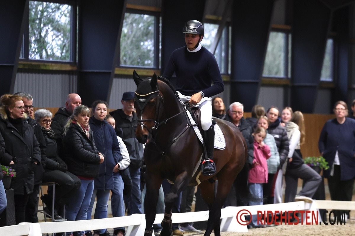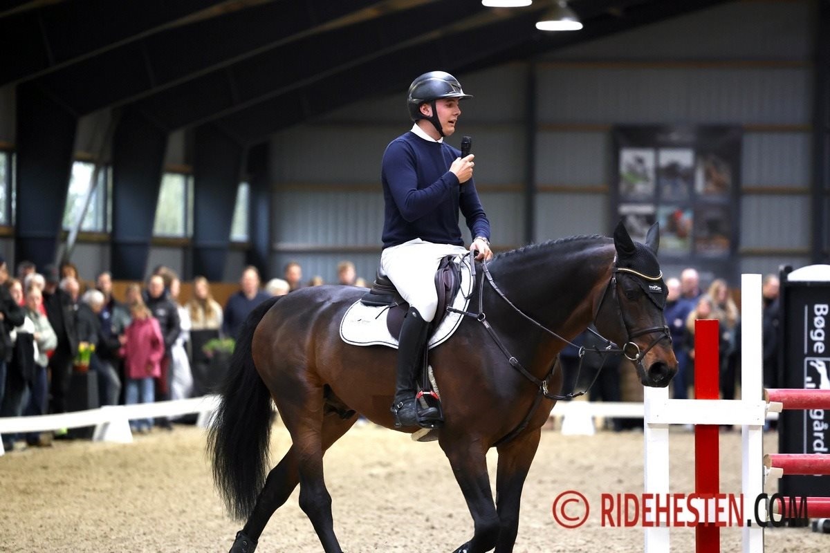 Det var Jacob Theodor Schmidt, der indledte fremvisningen i sadlen på den særdeles velspringende 5-årige hingst Bøgegårdens Unstoppable e. Syvhøjegårds Unforgetable S/ Bøgegårdens Dacapo – en hingst med masser af kapacitet og ridelighed.