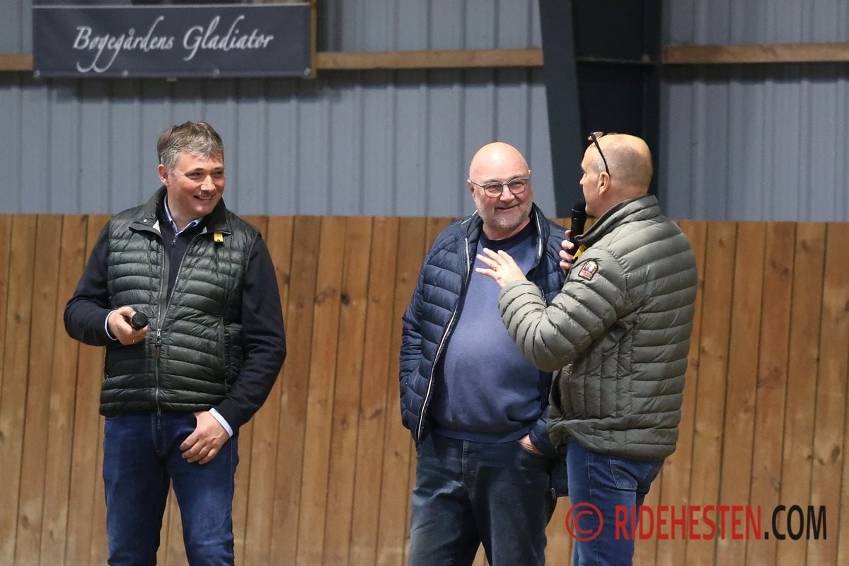 Aftenens sidste hingst i rampelyset var ingen ringere end Jacobs faste makker, netop hjemvendt fra de internationale baner – nemlig Bøgegårdens Gladiola e. Bøgegårdens Graf's Stakkato/ Bøgegårdens Apollo. Her blev Årets Avler 2025, Niels Osterland, kaldt ind på banen, for i 2024 indgik han nemlig et samarbejde med Bøgegården for at beholde Gladiola hjemme med det formål at blive Jacobs springstjerne på stævnebanerne.