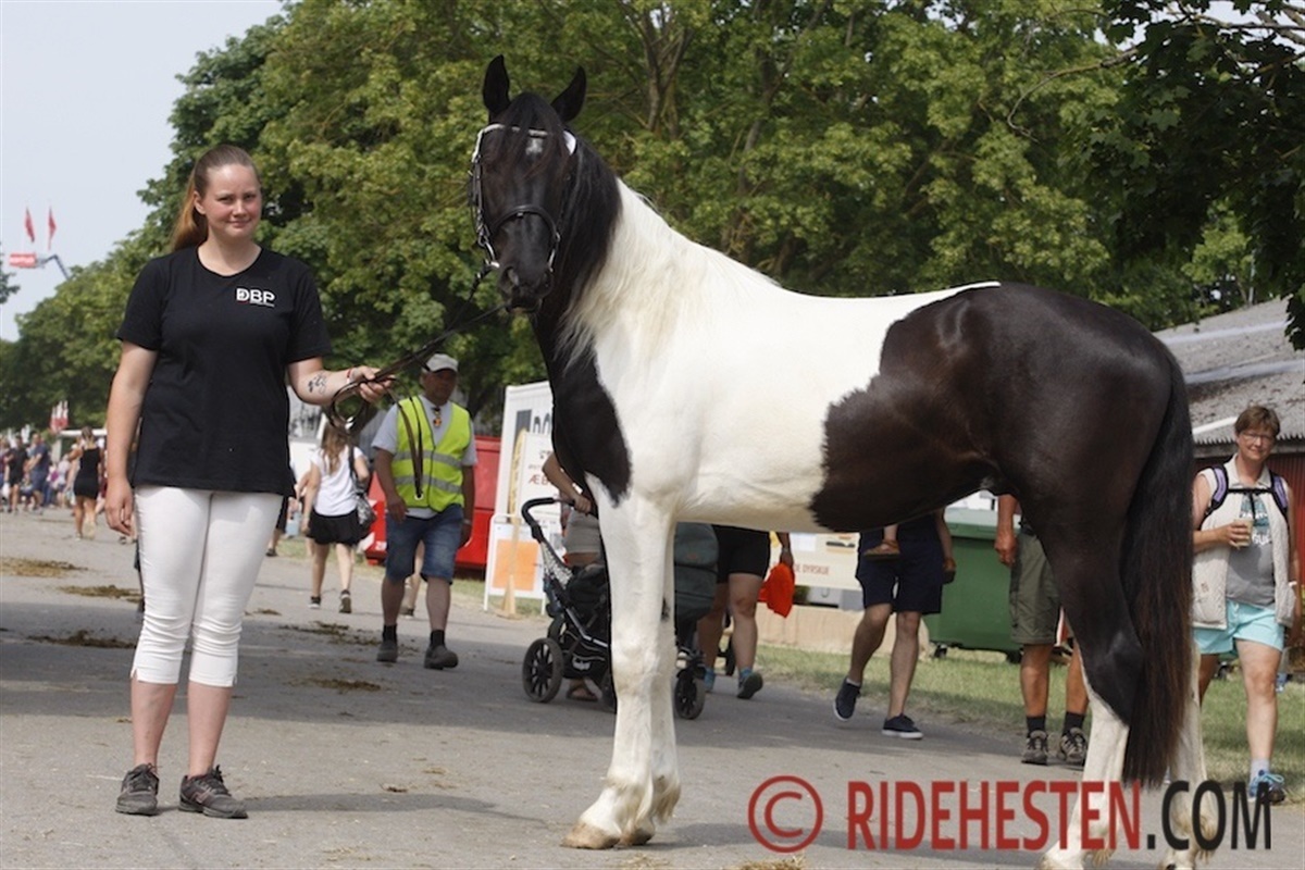 I Danmark har der fandtes barokpintoer i ca. 8 år, og Joan har været med til at starte avlen op her i landet. Hun har bl.a. avlet de to heste, Houdini af Dortheasminde og Harlekin af Dortheasminde, der blev fremvist som repræsentanter for racen på Roskilde Dyrskue i år. Hestene, som begge er 2-års hingste, er ejet af Ida Simoni fra Gundsømagle ved Roskilde, som fremviste dem sammen med sin far. Og velset eller ej – både Joan og Ida er meget begejstrede for barokpintoen, som i år for første gang fik lov at blive udstillet på det store dyrskue.