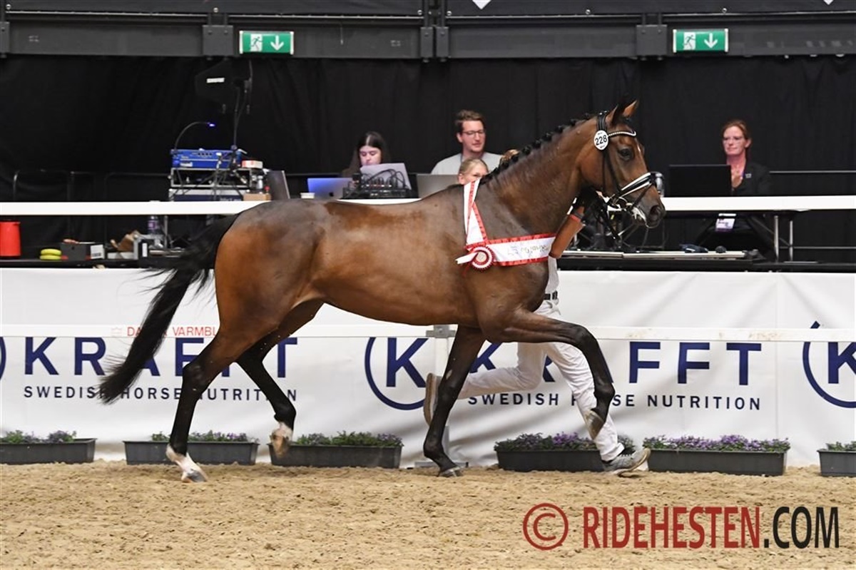 Overordentligt positivt gensyn at se hende under rytter, fremragende hoppe, der har hele pakken og som udstråler kæmpe talent. Hun er fantastisk flot, ren og skær i typen med dejligt åbne og vellinjerede kropspartier. Hun er passende ædel og udtryksfuld med godt kønspræg og vender flot i halsen under rytter. Bevægelsen er helt prima i alle tre gangarter og hun bevæger sig dejligt let med sving, bæring og elasticitet, rummelig og op-ad-bakke tendens. Hun er enorm ridelig, lydig og samarbejdsvillig og virker som virker til at have et meget cool temperament.