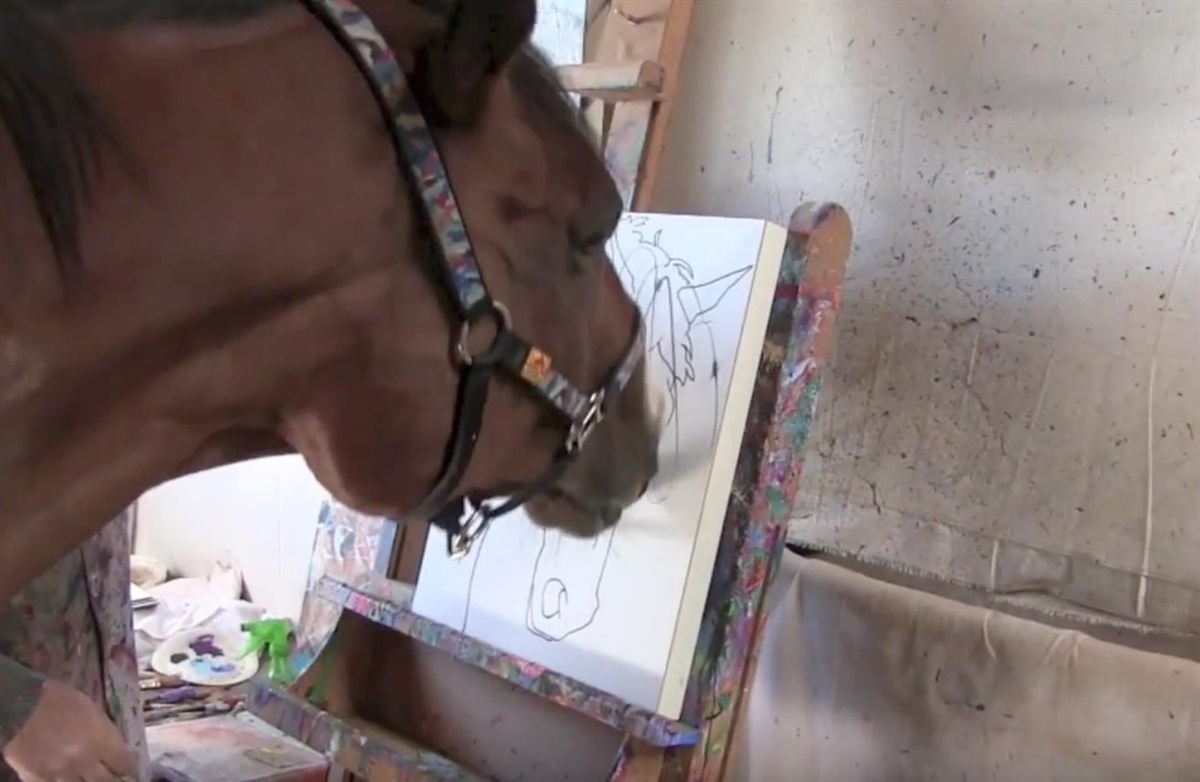 Hesten hedder Metro Meteor og har vundet mere end 300.000 dollars på de amerikanske væddeløbsbaner. Han er nu gået på pension som 9-årig på grund af en knæskade. Oplært af sin nye ejer kunstneren Ron Krajewski fra Pennsylvania er Metro nu kommet i gang med en karriere som abstrakt kunstner. Ron forklarer at Metro havde en vane med at ville tage alting i munden og så nikke med hovedet. Derfor var Ron ikke længe om at lade Metro få en pensel i munden, og så var karrieren allerede i gang.