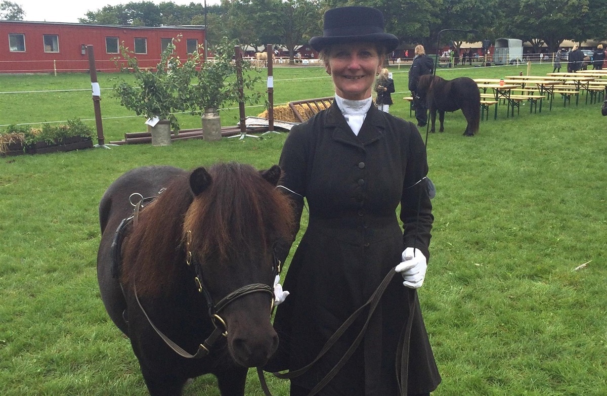 June Mølgard stiller for første gang op med den 4. årige Shetlandspony Beckham for lange linier, dvs. hvor man går bag hesten og laver dressur-øvelser.