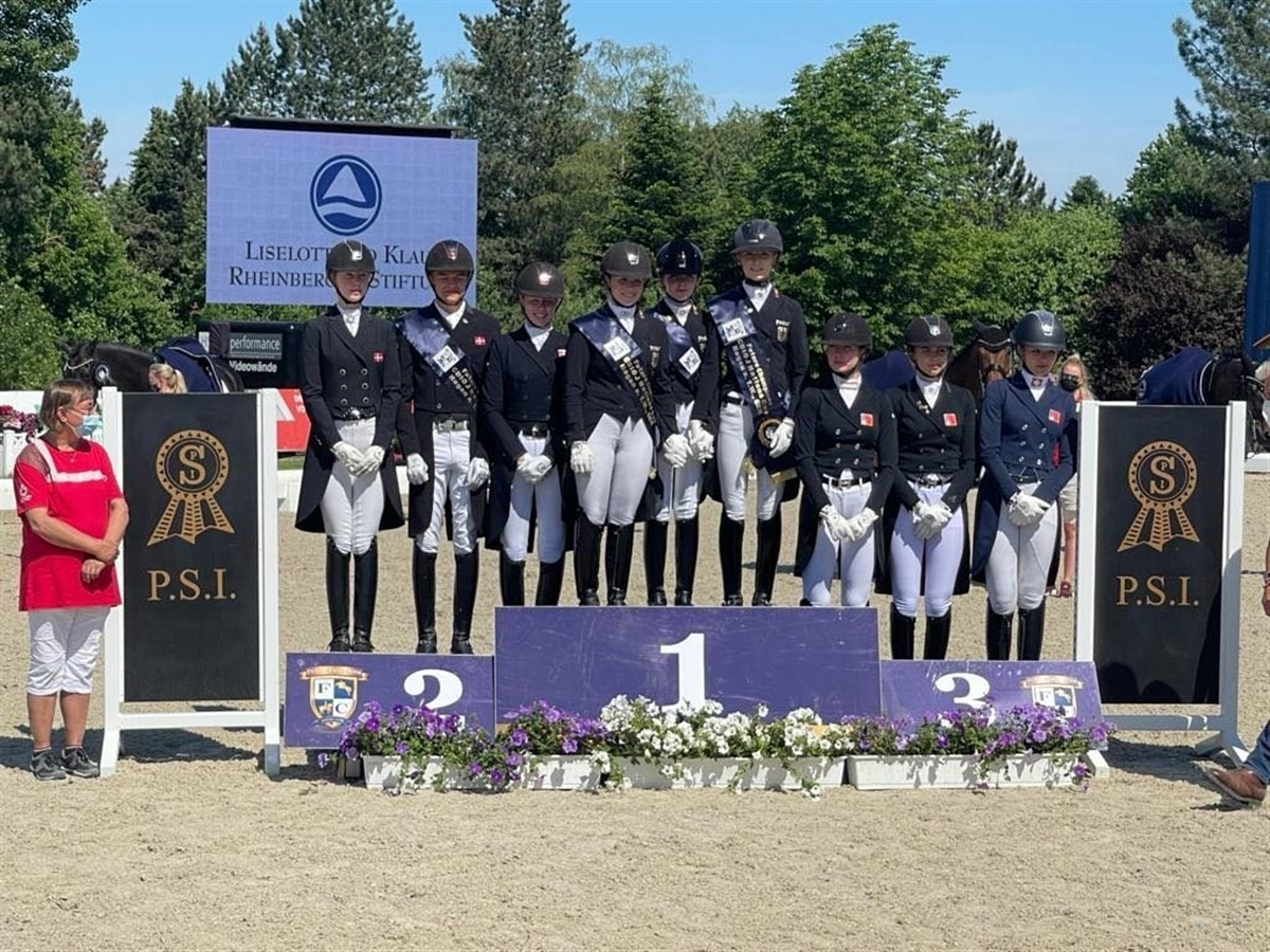 De danske ryttere har klaret sig rigtig godt i konkurrence med bl.a. nogle meget stærke tyske ekvipager. I går afvikledes holdkonkurrencen for junior- og ungryttere, hvor begge danske hold kunne sikre sig en andenplads, og det også blev til mange flotte individuelle placeringer, hvor Alexander Helgstrand fik Dannebrog til tops.