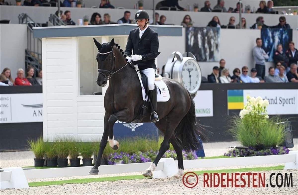 Andreas har den sat sig i den stærke position, at han har to topheste med i finalen i dag, da han også rider avlshingsten Jovian e. Apache/ Tango, der ejes af Kleppenhus og Helgstrand Dressage. Jovian blev nr. 4 i kvalifikationen og scorede som den eneste hest i kvalifikationen for 5-års et 10-tal for trav og hele vejen igennem meget høje karakterer med undtagelse af 7,5 for skridt, som er den gangart, der i dag skal forbedre for at være med i medaljekampen.